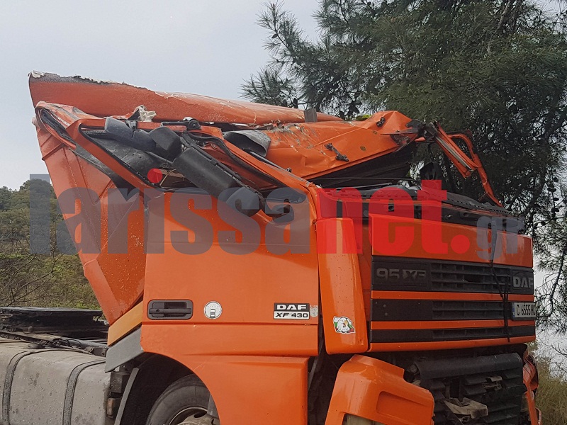 Εκείνη την ώρα, στο ρεύμα προς Θεσσαλονίκη κινούταν λαρισινή νταλίκα (της εταιρίας μεταφορών «Ντελόπουλος») η οποία χτυπήθηκε στο πίσω μέρος της, καταφέρνοντας ο οδηγός της να την κατευθύνει πριν τη σύγκρουση σε παρακείμενο πάρκινγ. Είναι καλά στην υγεία τους τόσο ο Λαρισαίος οδηγός, όσο και ο συνοδηγός του.