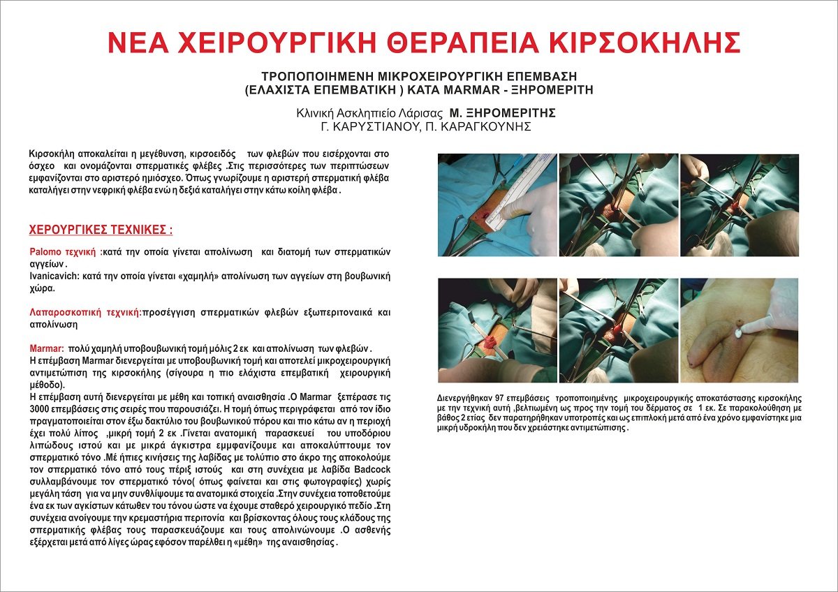 Μarmar: πολύ χαμηλή υποβουβωνική τομή μόλις 2 εκ και απολίνωση των φλεβών. Η επέμβαση Marmar διενεργείται με υποβουβωνική τομή και αποτελεί μικροχειρουργική αντιμετώπιση της κιρσοκήλης (σίγουρα η πιο ελάχιστα επεμβατική χειρουργική μέθοδο).