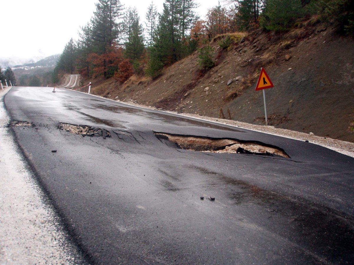 Η μία καθίζηση εντοπίζεται στο δρόμο από Αγιά προς Μελιβοία, σε ένα δρόμο που ποτέ μέχρι σήμερα δεν είχε «πληγωθεί» από τα καιρικά φαινόμενα.