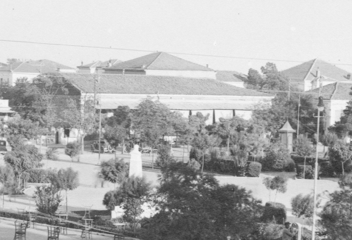 Το καφενείο «Παράδεισος» στην ανατολική πλευρά της Κεντρικής Πλατείας. Λεπτομέρεια από επιστολικό δελτάριο του Ιωάννη Κουμουνδούρου. 1935 περίπου.