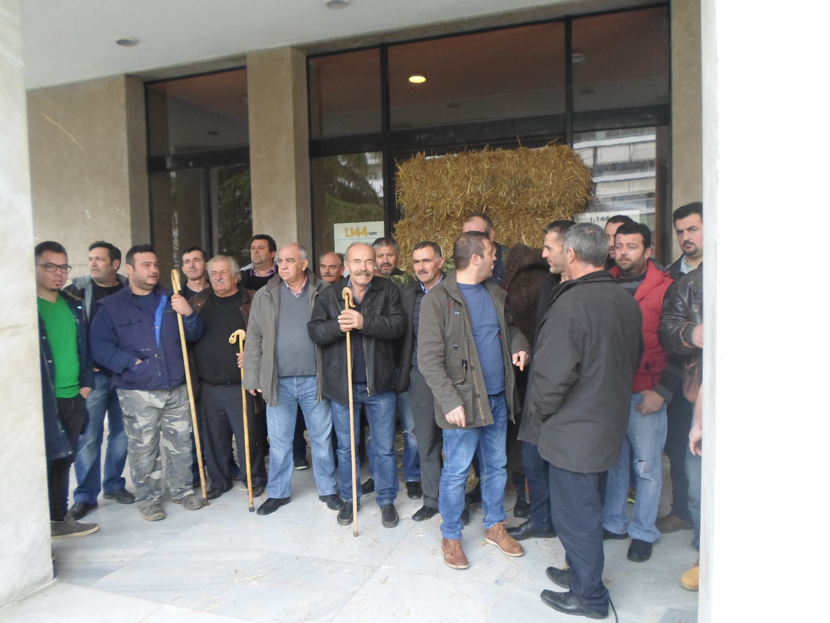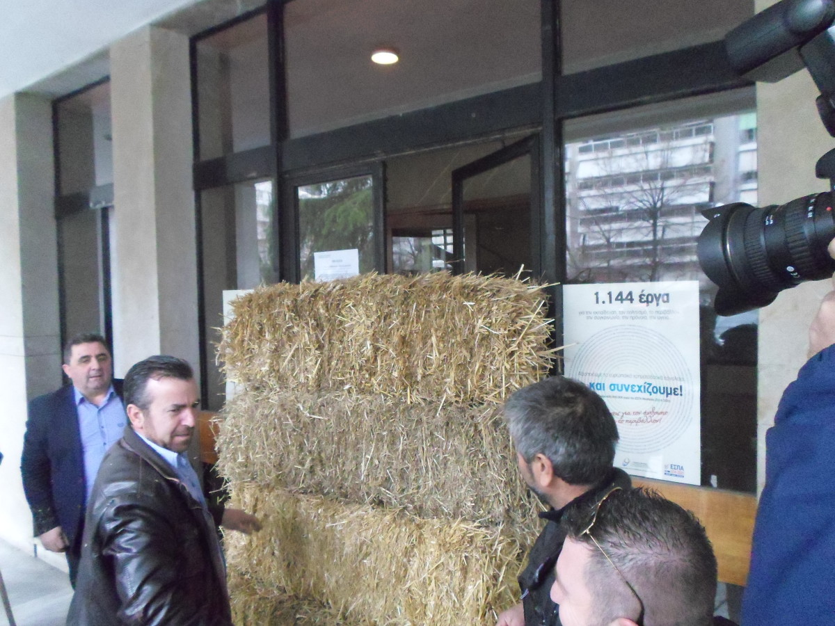 Παράλληλα, «έφραξαν» την είσοδο της Περιφέρειας Θεσσαλίας τοποθετώντας μπάλες με άχυρο.