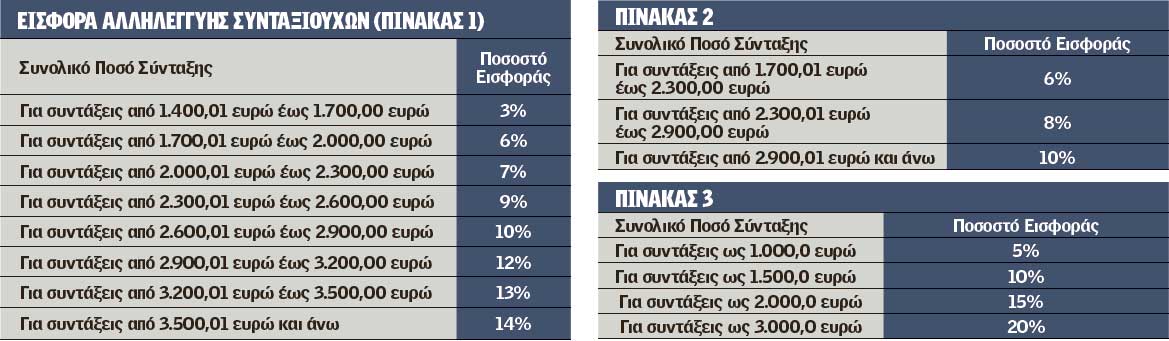 - Εισφορά αλληλεγγύης συνταξιούχων (πίνακας 1).