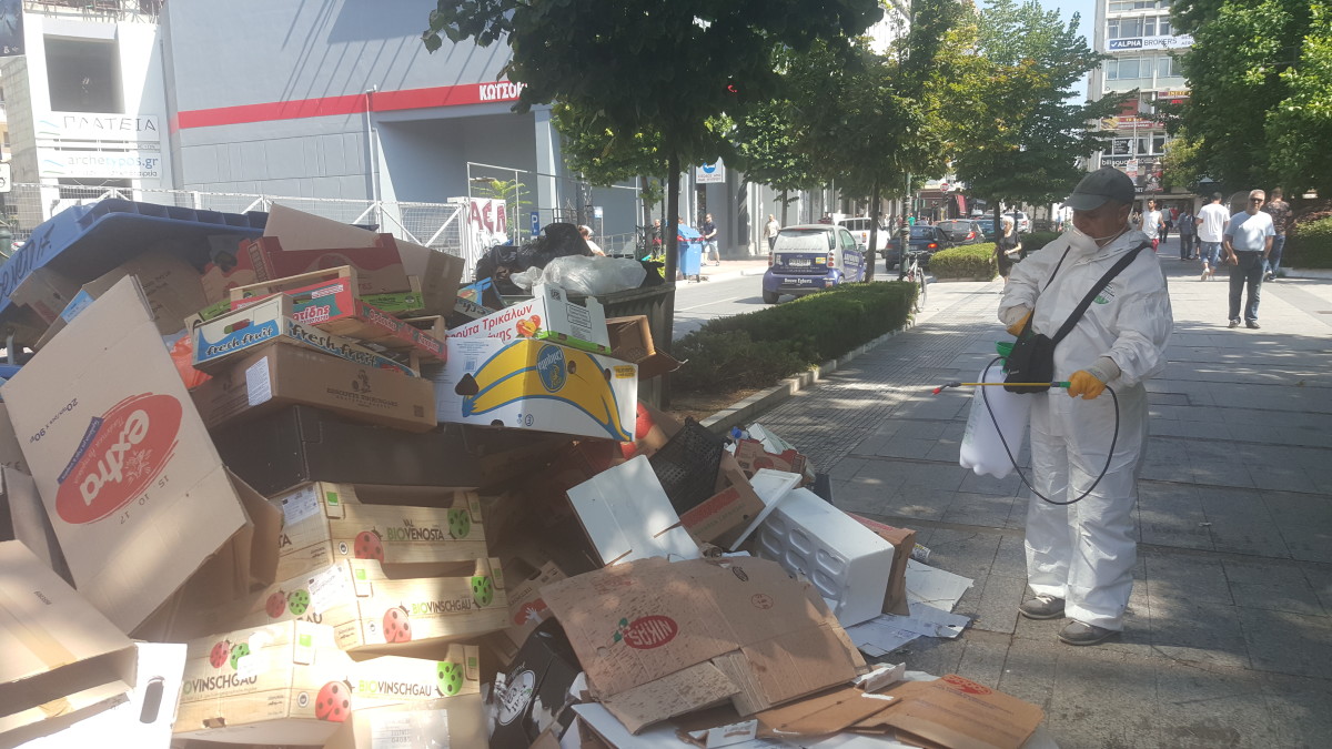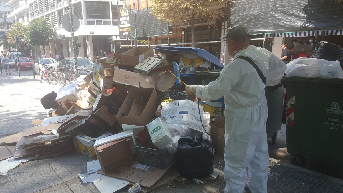 Ξεκίνησαν -όπως είχε ανακοινωθεί χθες στη συνάντηση του δημάρχου Λαρισαίων με τους εργαζόμενους- οι ψεκασμοί σε σκουπίδια στο κέντρο της Λάρισας.