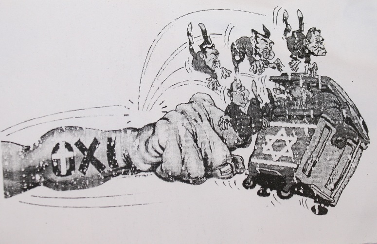 Φέιγ βολάν (αυτό που βλέπεται και στη φωτογραφία) πέταξαν άγνωστοι σήμερα το μεσημέρι στην Πλατεία Εβραίων Λάρισας και μπροστά από το μνημείο του Ολοκαυτώματος των Ελλήνων Εβραίων Λάρισας.