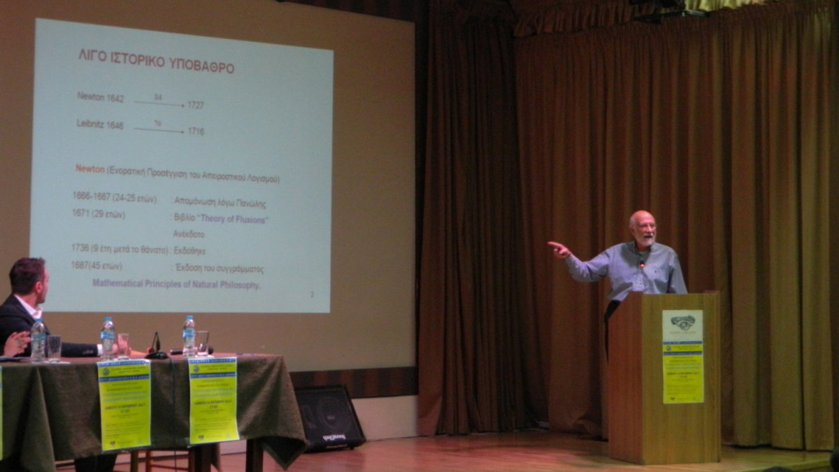 Ο κ.Δάσιος Γεώργιος, Ομότιμος Καθηγητής Εφαρμοσμένων Μαθηματικών του Τμήματος Χημικών Μηχανικών Πανεπιστημίου Πατρών, ανέφερε στην εισήγησή του, ότι για περισσότερο από 350 χρόνια, η επιστημονική και τεχνολογική ανάπτυξη εδράστηκε επάνω στις έννοιες του Απειροστικού Λογισμού που εισήγαγαν οι Newton και Leibniz. Οι δυο έννοιες-πυλώνες αυτής της μαθηματικής δομής ήταν αυτές της παραγώγου και του ολοκληρώματος, δυο έννοιες που αλληλοαναιρούνται, αφού η κάθε μια είναι αντίστροφη της άλλης. Από ό,τι γνωρίζαμε μέχρι πρόσφατα, οι έννοιες αυτές καθορίζονται μόνο για ακέραιες τιμές μιας παραμέτρου , που ονομάζεται ‘’τάξη’’. Είναι όμως εξόχως εντυπωσιακό το γεγονός , ότι μπορούμε να επεκτείνουμε τις έννοιες της παραγώγου και της ολοκλήρωσης για τάξεις που είναι οποιοσδήποτε μη ακέραιος αριθμός . Οι εφαρμοσμένες δυνατότητες που ανοίγονται από αυτή την επέκταση, φαίνονται να είναι απεριόριστες και για αυτόν ακριβώς τον λόγο η μελέτη αυτής της μαθηματικής θεωρίας βρίσκεται σήμερα στις πρώτες γραμμές της παγκόσμιας έρευνας.