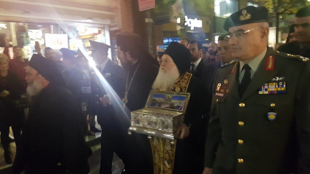 Πλήθος κόσμου έσπευσε να υποδεχτεί την Αγία Ζώνη της Υπεραγίας Θεοτόκου, που βρίσκεται στη Μονή Βατοπεδίου στο Άγιο Όρος και έφτασε στη Λάρισα σήμερα το απόγευμα.