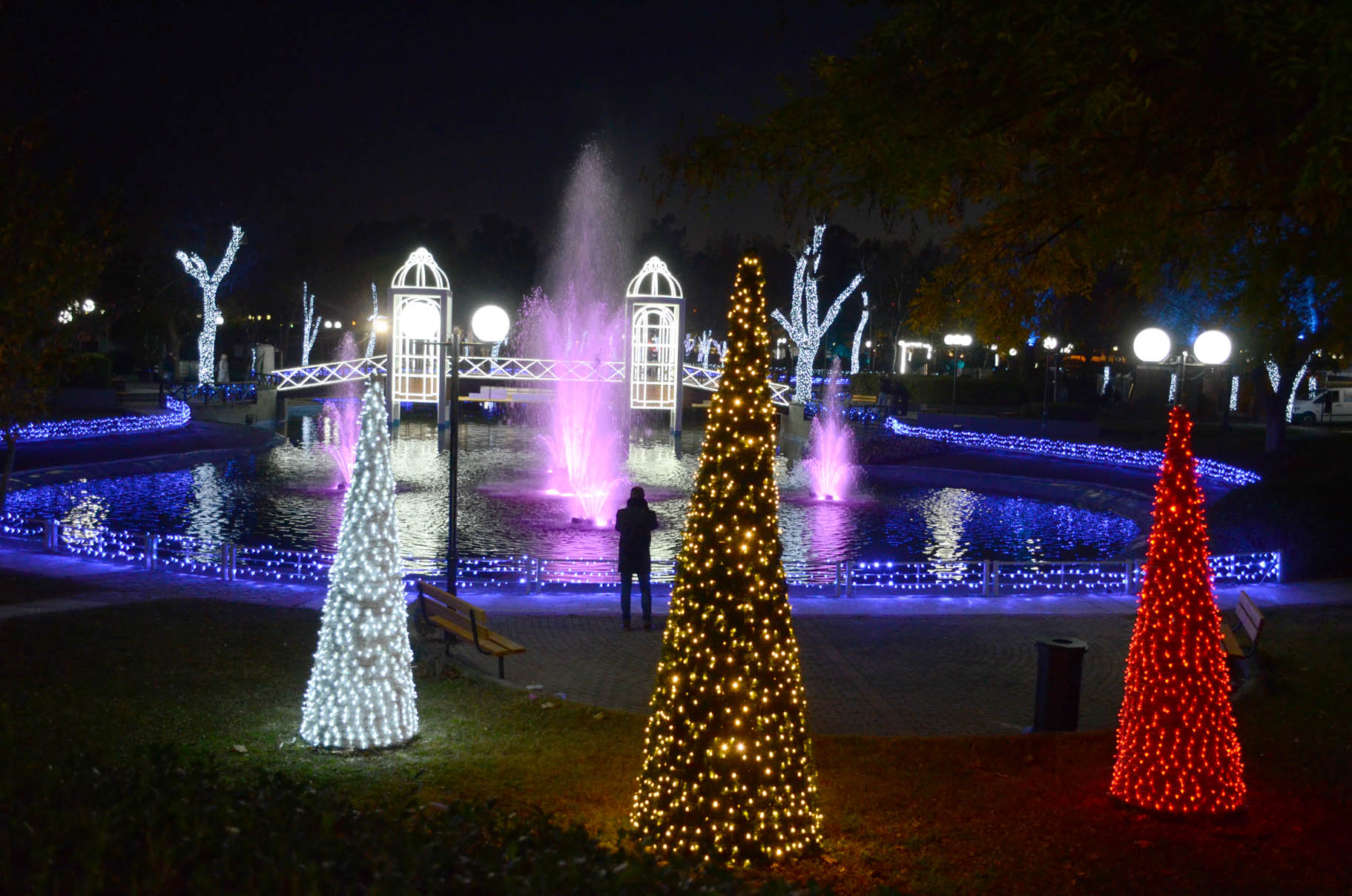 Είναι πραγματικά μαγικό το Πάρκο των Ευχών καθώς σκοτεινιάζει. Το απόγευμα της ο δήμαρχος Λαρισαίων Απόστολος Καλογιάννης και ο αντιδήμαρχος Παναγιώτη Νταής ανέλαβαν να ξεναγήσουν τοπικούς αλλά και δημοσιογράφους από άλλες περιοχές της Θεσσαλίας και της υπόλοιπης Ελλάδας.