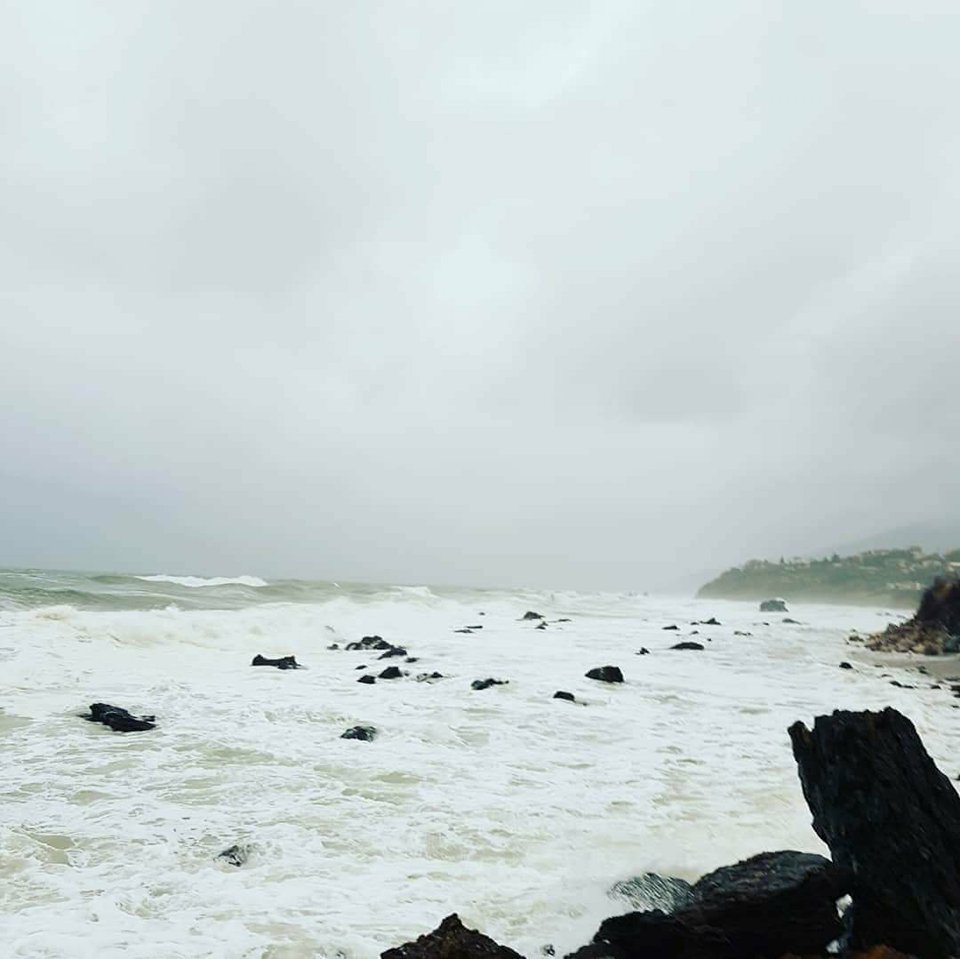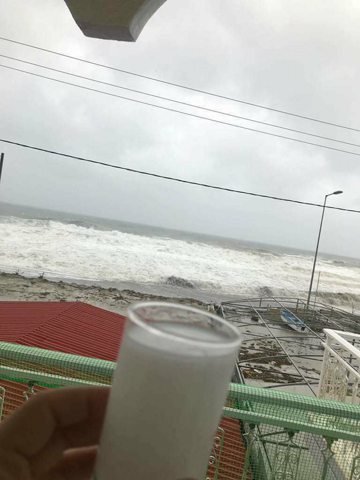 Δεν λείπουν και οι μερακλήδες που απολαμβάνουν τη μανιασμένη θάλασσα πίνοντας ένα τσίπουρο: