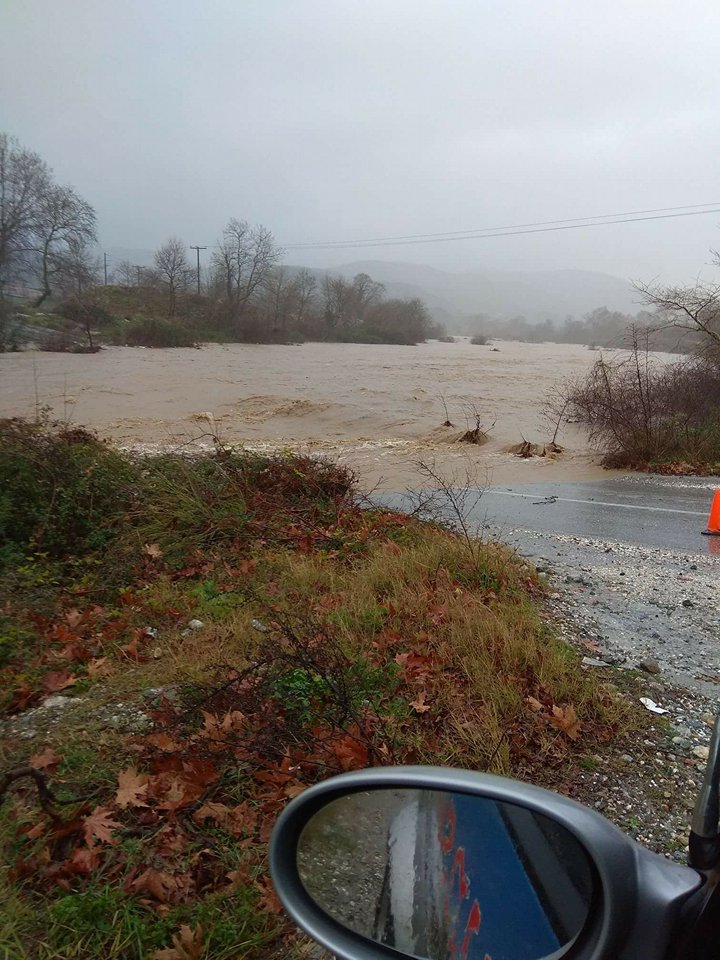 Παράλληλα, εξαιτίας των ισχυρών βροχοπτώσεων τα ρέματα κατεβάζουν μεγάλες ποσότητες νερού, κάνοντας δύσκολη την μετακίνηση με αυτοκίνητα: