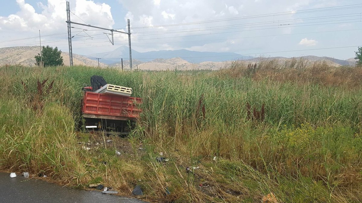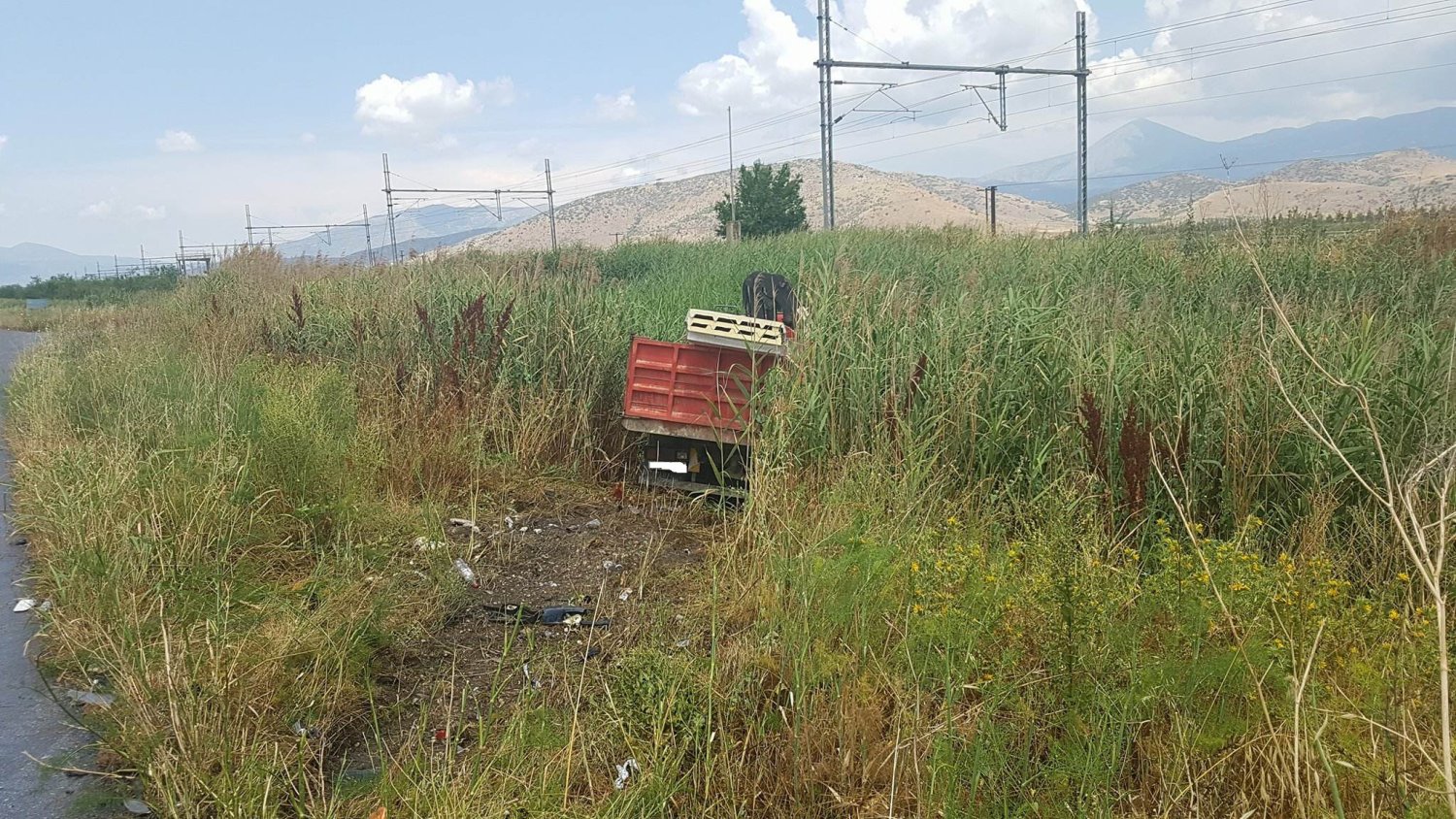 Το φορτηγό κατέληξε σε παρακείμενο χαντάκι.