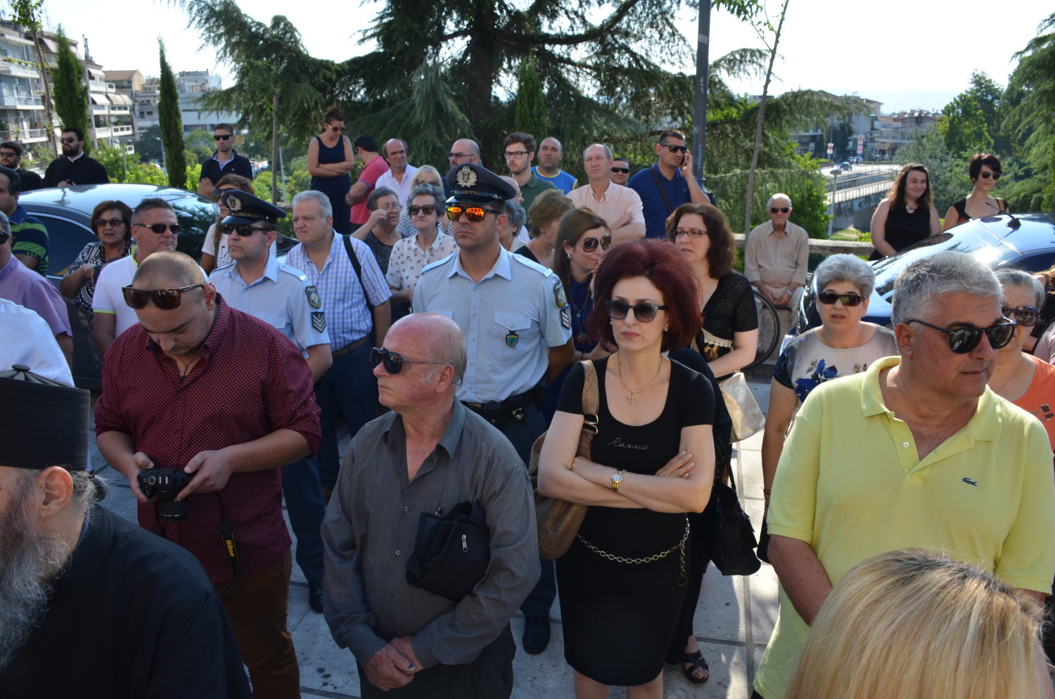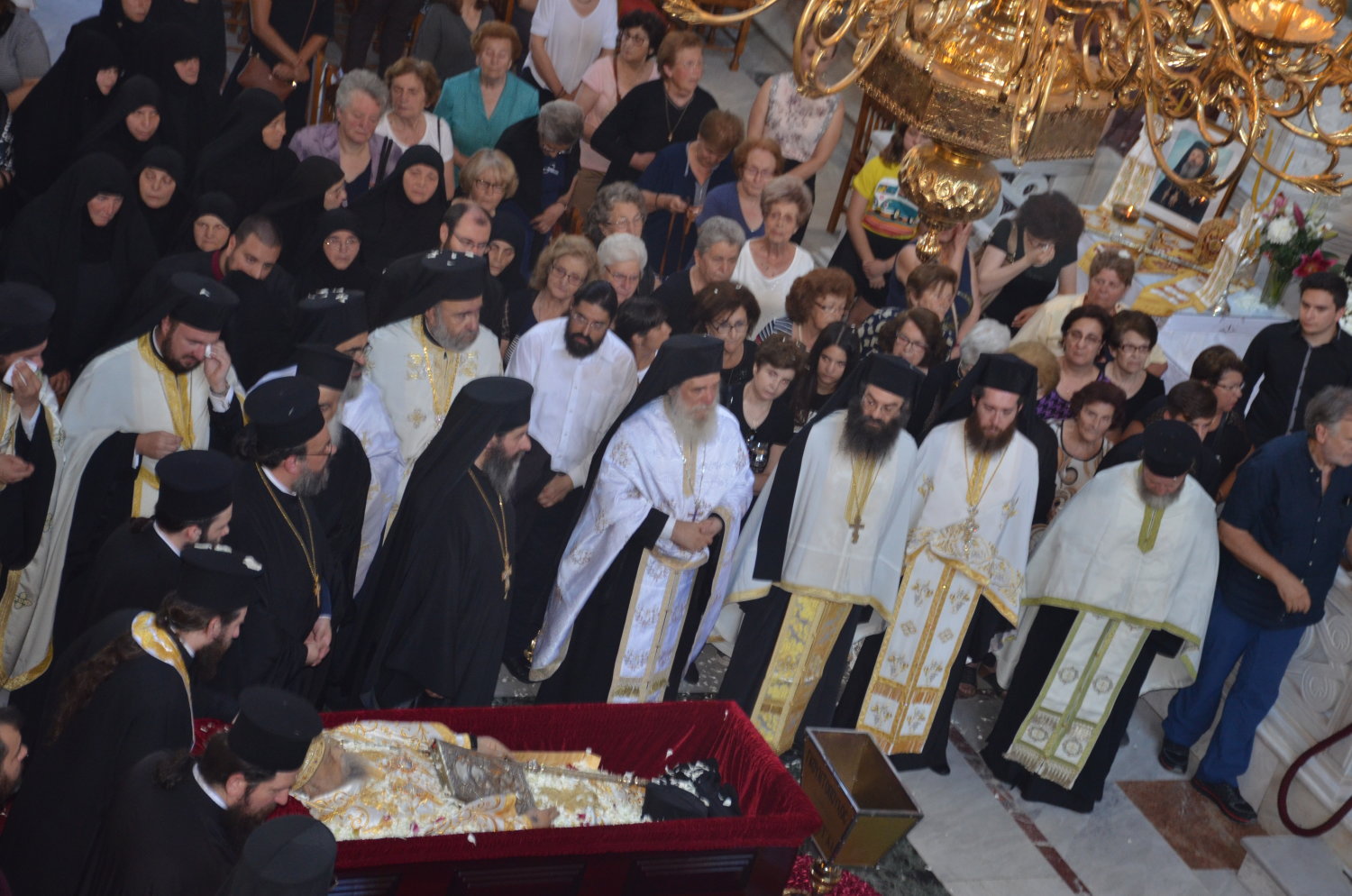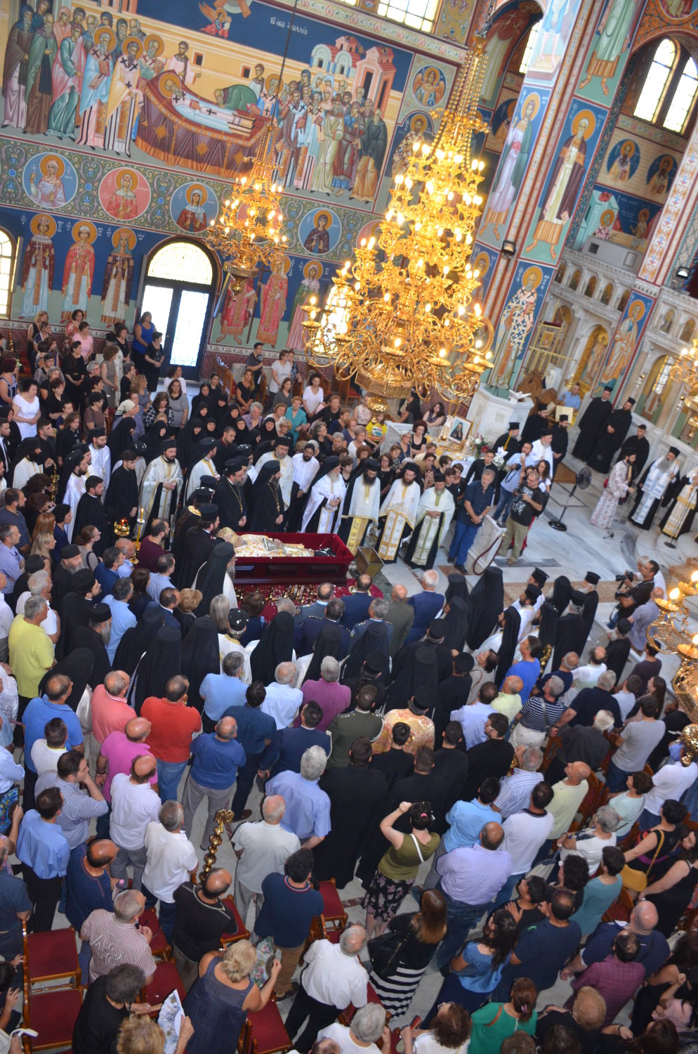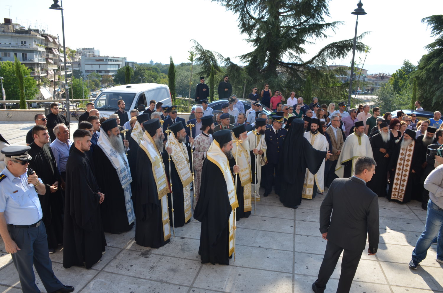Εντός του ναού τελέστηκε τρισάγιο στο οποίο χοροστάτησαν οι Μητροπολίτες Σερρών Θεολόγος, Θεσσαλιώτιδος Τιμόθεος, Ελλασόνας Χαρίτων, Τρίκκης και Σταγών Χρυσόστομος, Σταγών και Μετεώρων Θεόκλητος και Δημητριάδος Ιγνάτιος