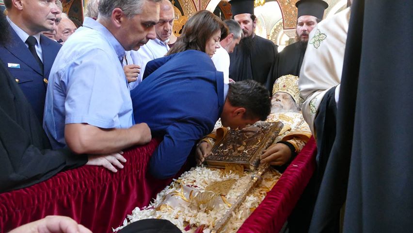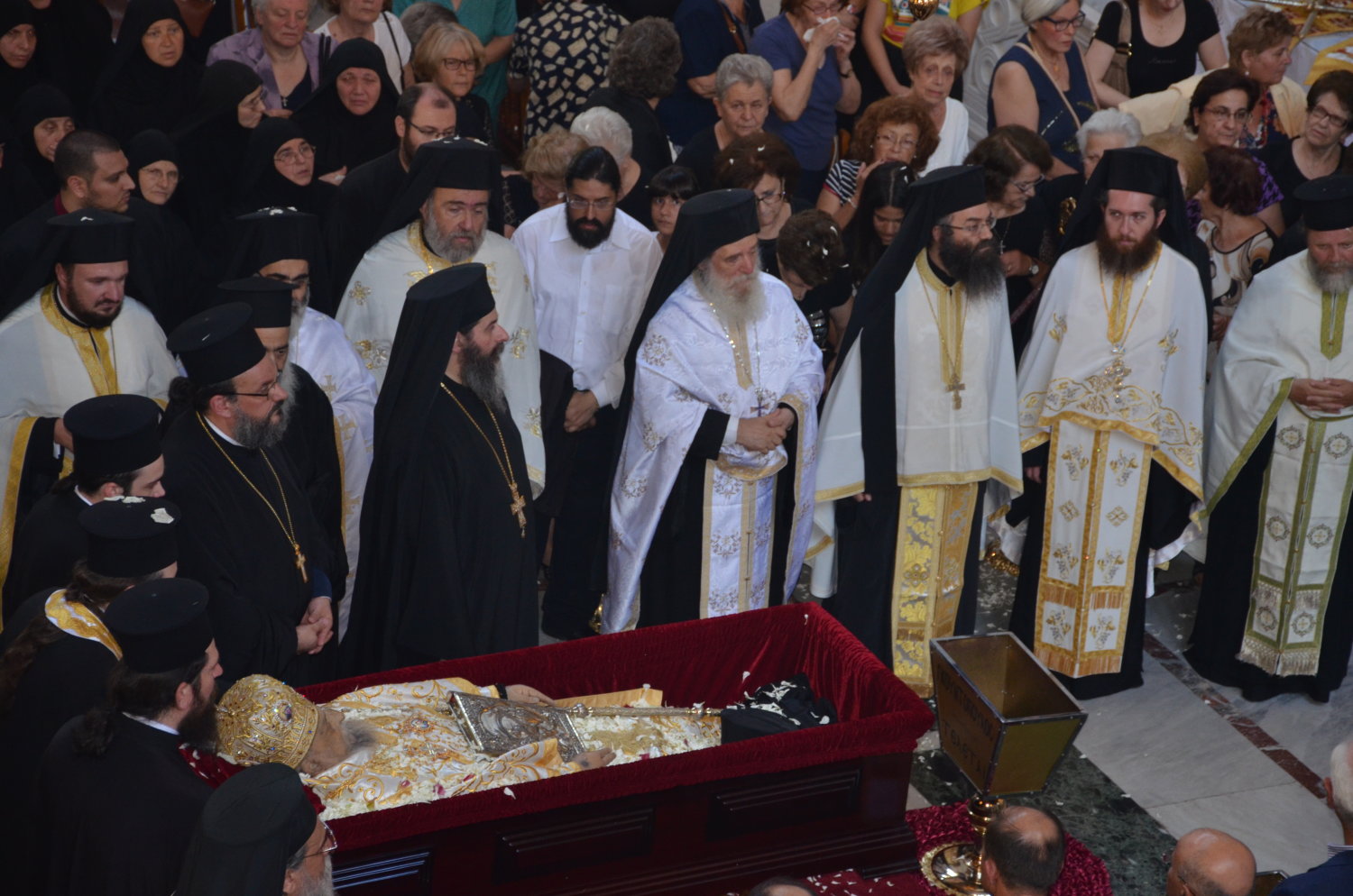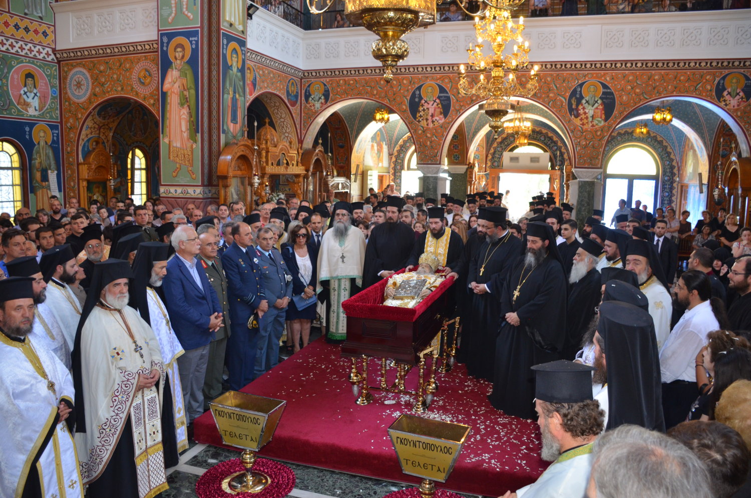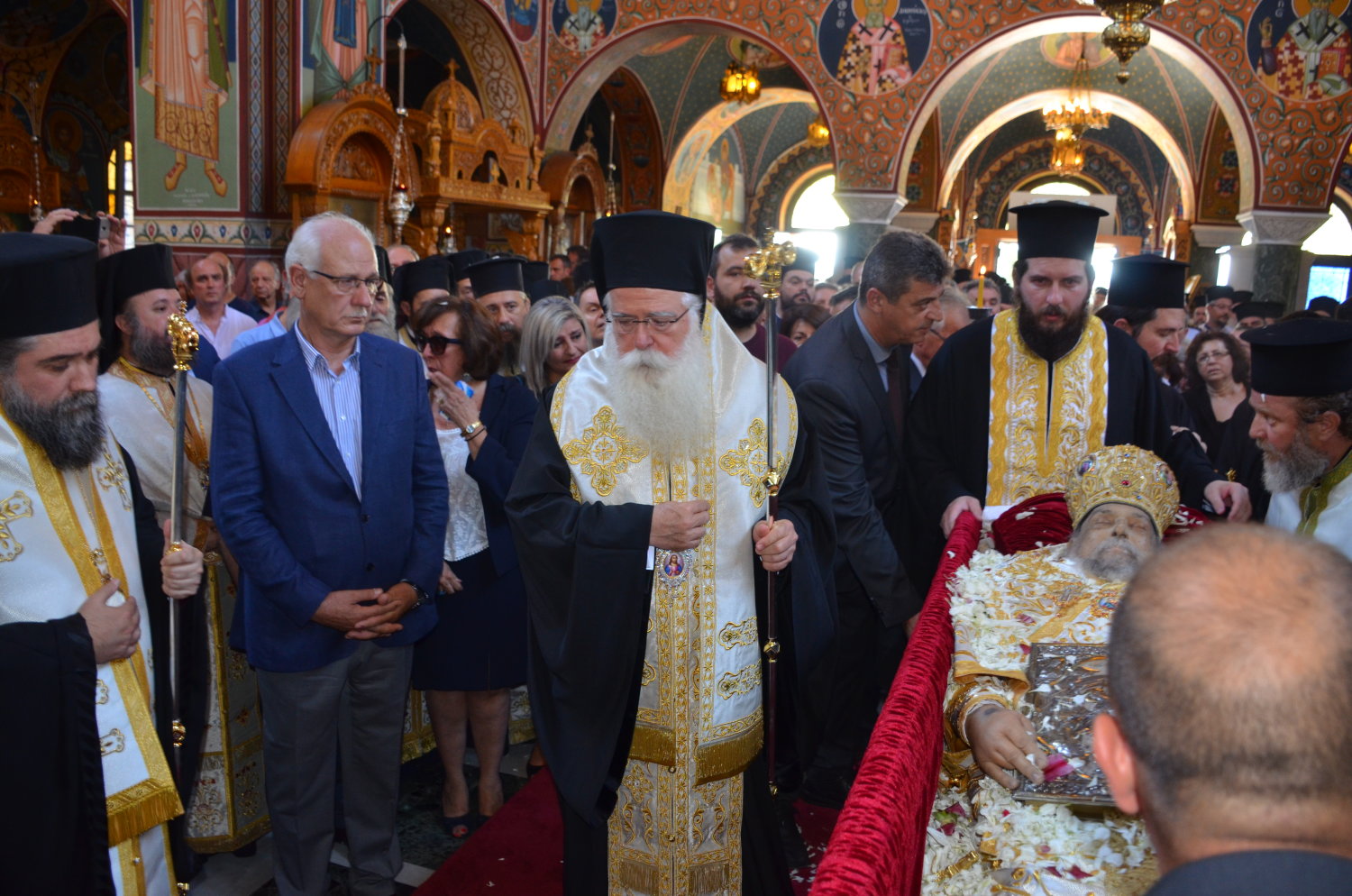 Εντός του ναού τελέστηκε τρισάγιο στο οποίο χοροστάτησαν οι Μητροπολίτες Σερρών Θεολόγος, Θεσσαλιώτιδος Τιμόθεος, Ελλασόνας Χαρίτων, Τρίκκης και Σταγών Χρυσόστομος, Σταγών και Μετεώρων Θεόκλητος και Δημητριάδος Ιγνάτιος