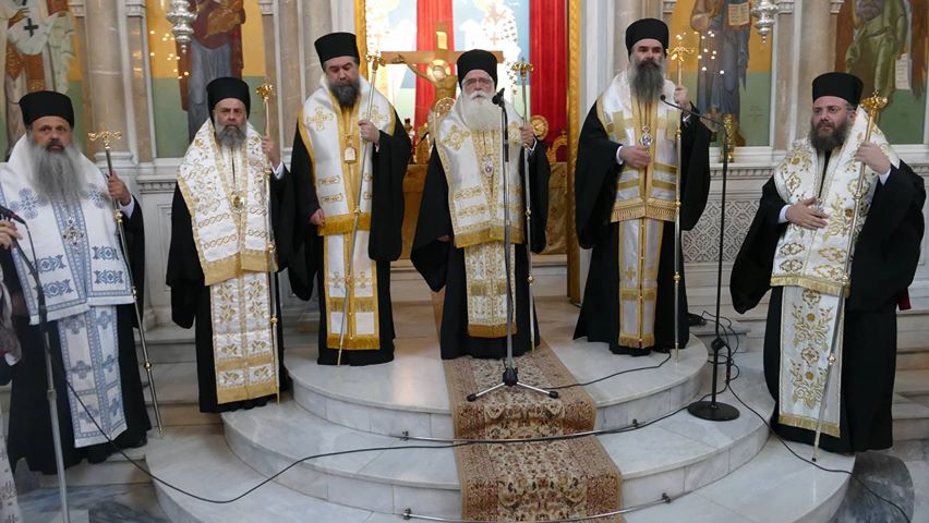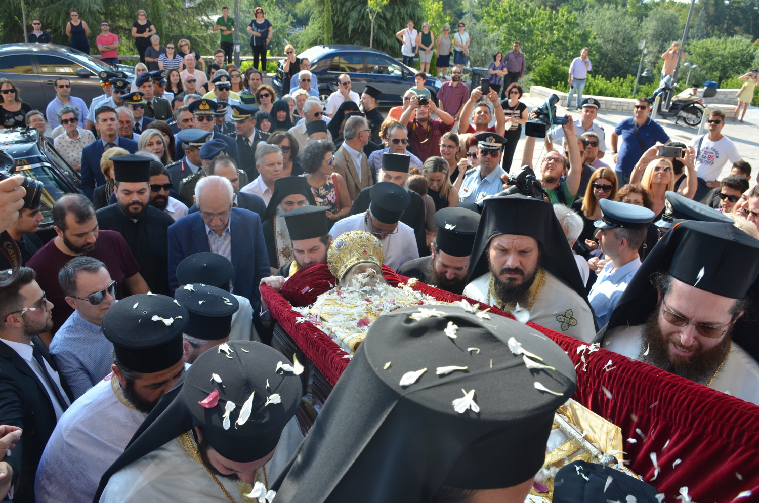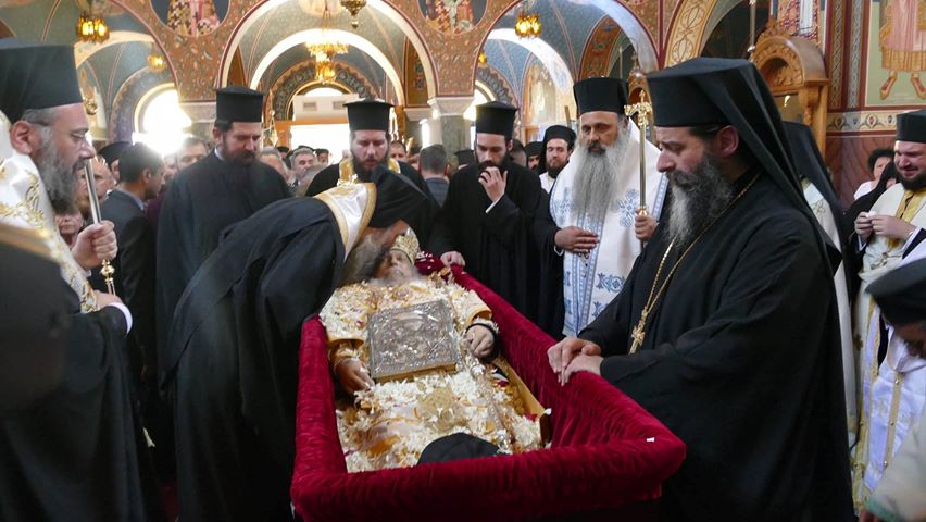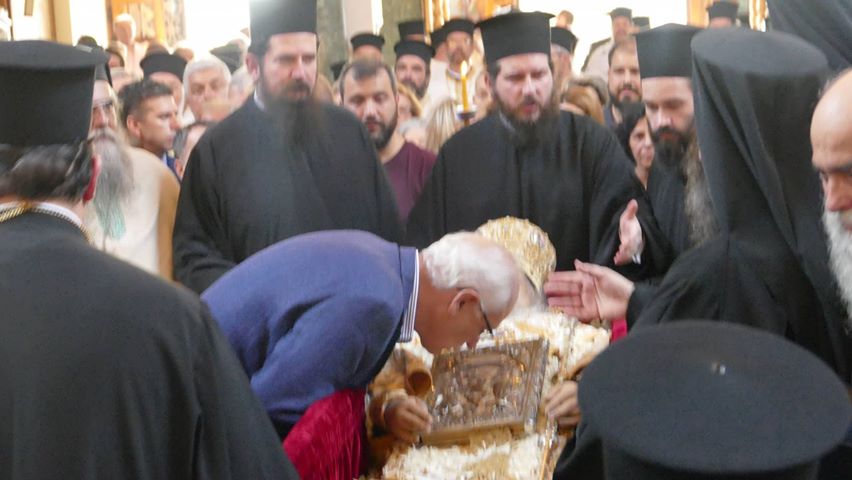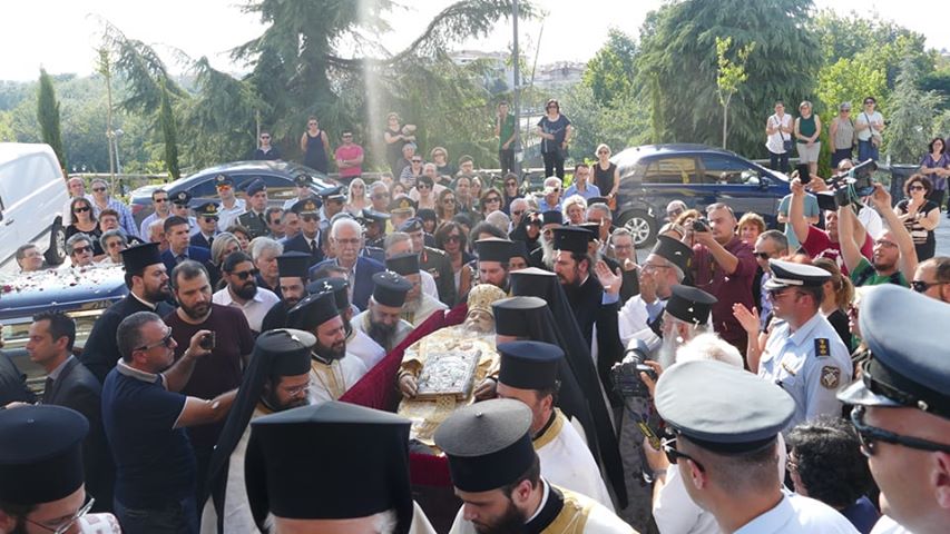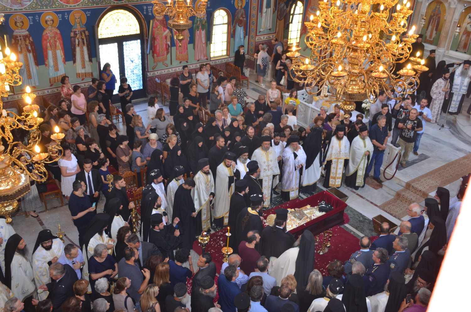 Εντός του ναού τελέστηκε τρισάγιο στο οποίο χοροστάτησαν οι Μητροπολίτες Σερρών Θεολόγος, Θεσσαλιώτιδος Τιμόθεος, Ελλασόνας Χαρίτων, Τρίκκης και Σταγών Χρυσόστομος, Σταγών και Μετεώρων Θεόκλητος και Δημητριάδος Ιγνάτιος