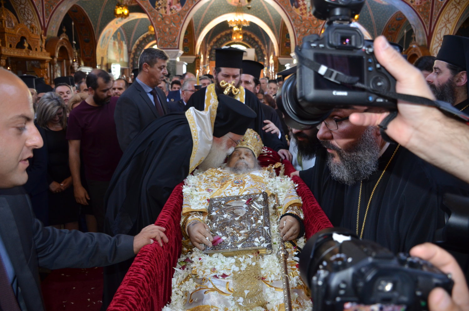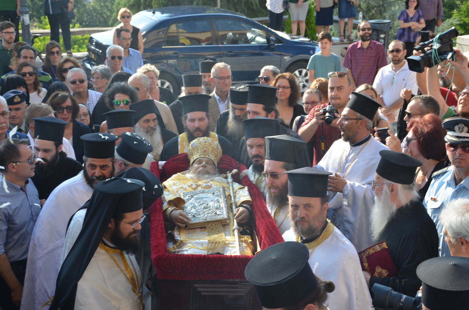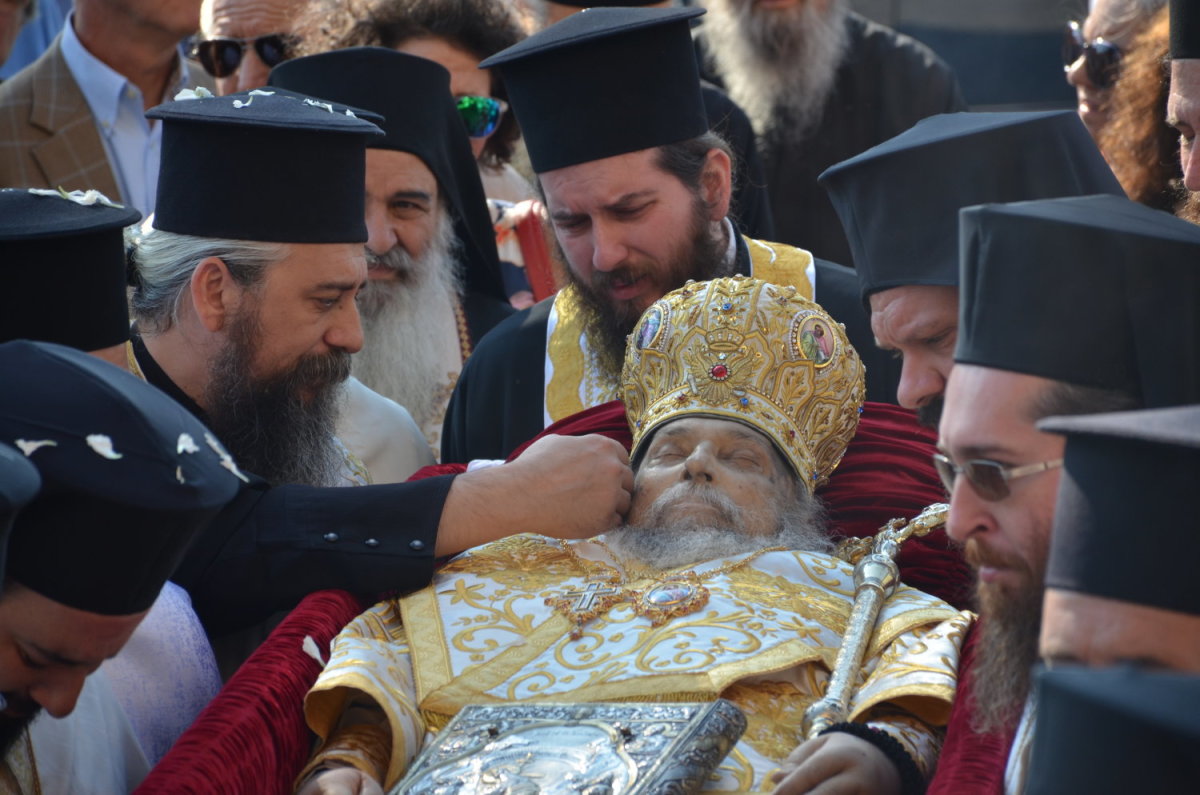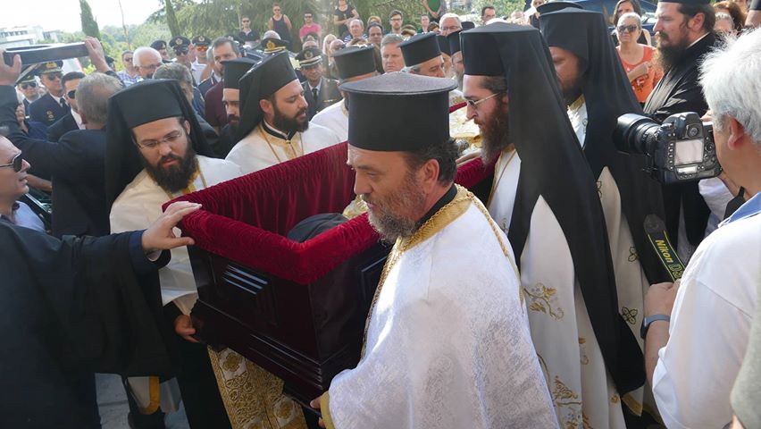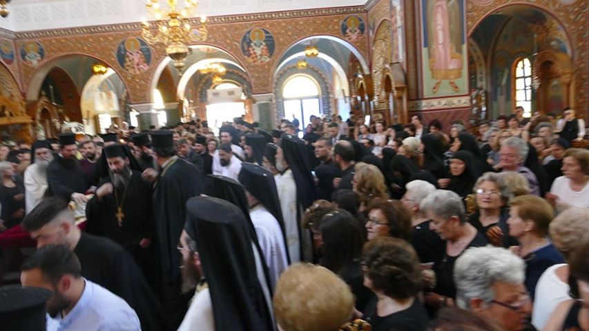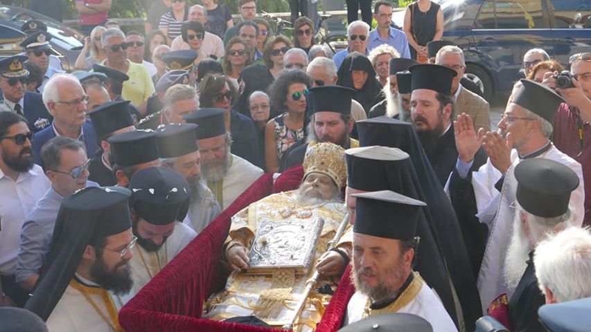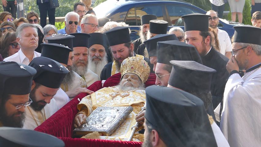 Κλίμα οδύνης από τον συγκεντρωμένο κόσμο, που φώναξε «άξιος» όταν ανέβαινε στα χέρια ιεραρχών τα σκαλιά της Μητρόπολης.