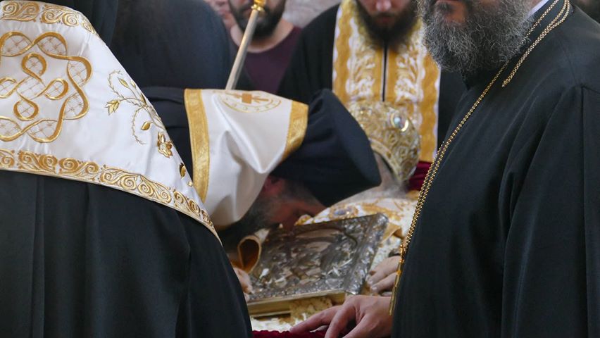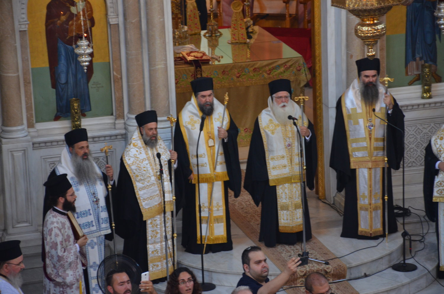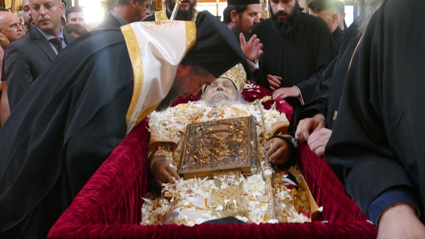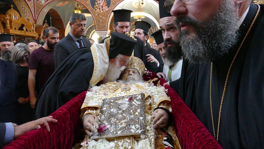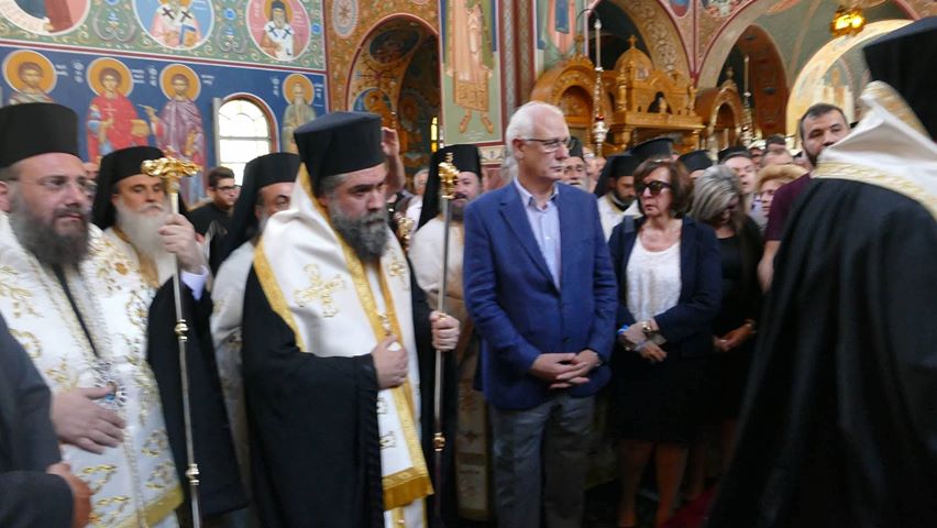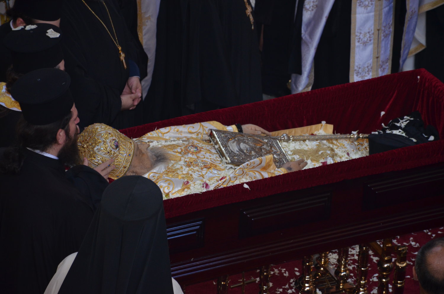 Κλίμα οδύνης από τον συγκεντρωμένο κόσμο, που φώναξε «άξιος» όταν ανέβαινε στα χέρια ιεραρχών τα σκαλιά της Μητρόπολης.