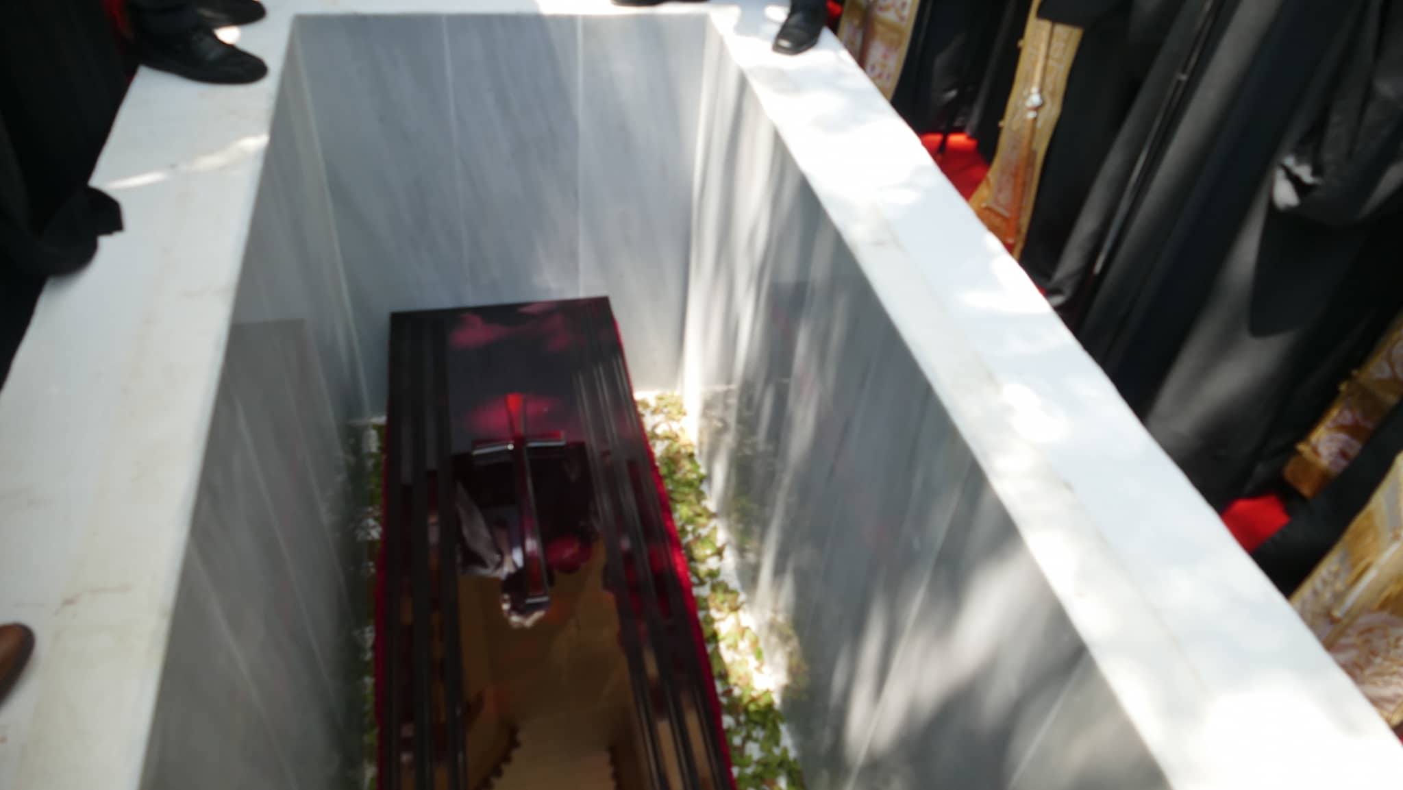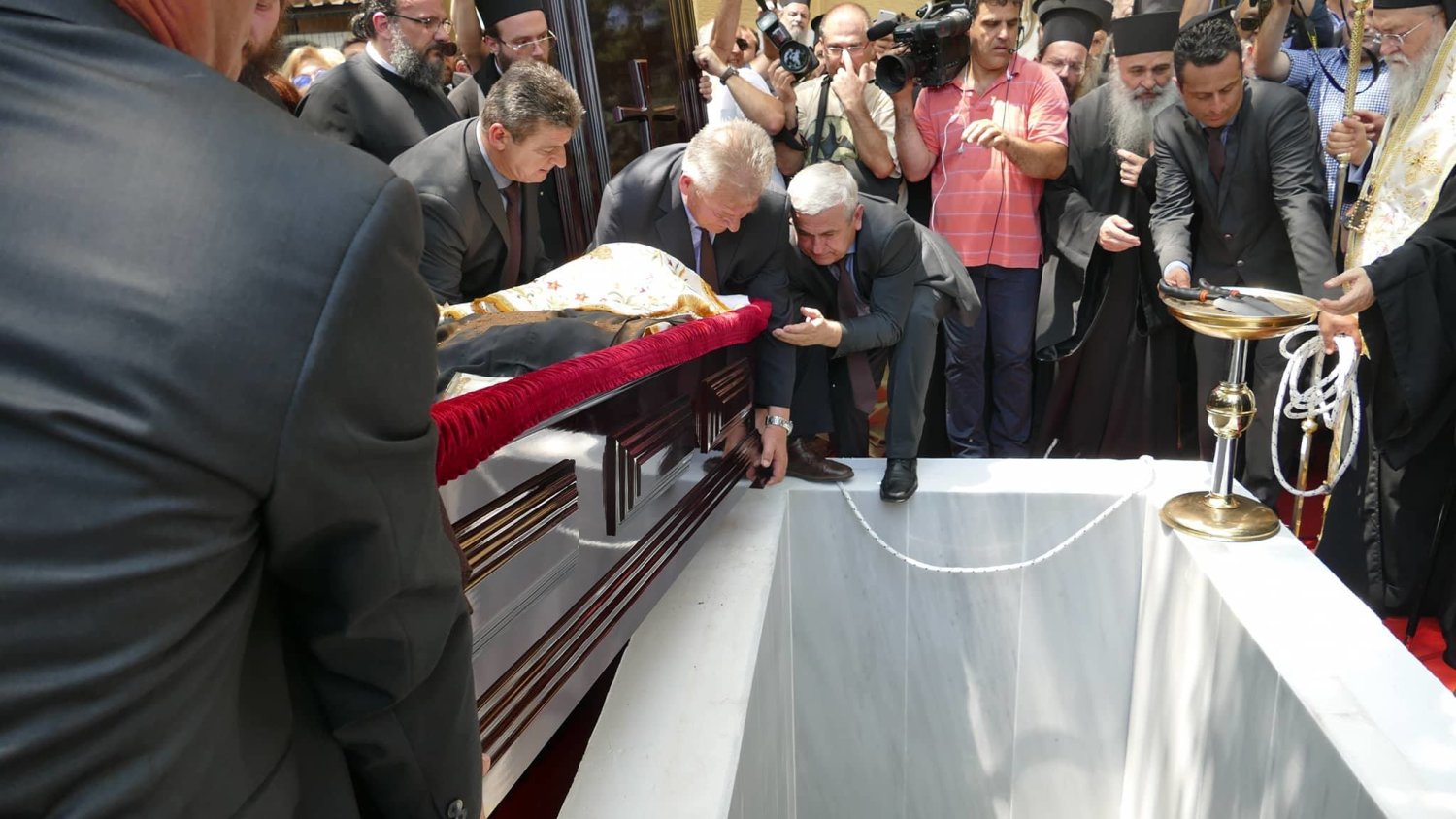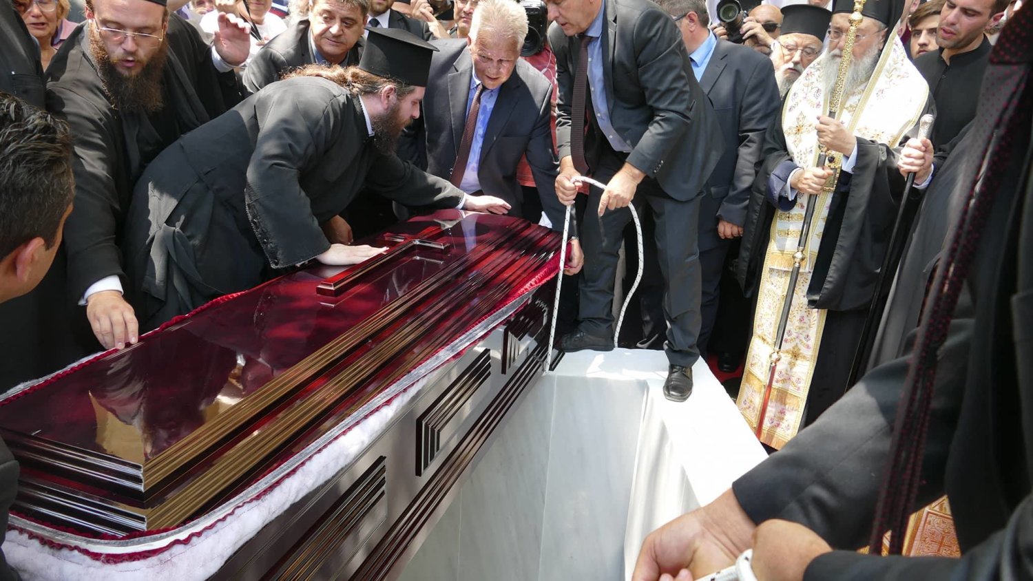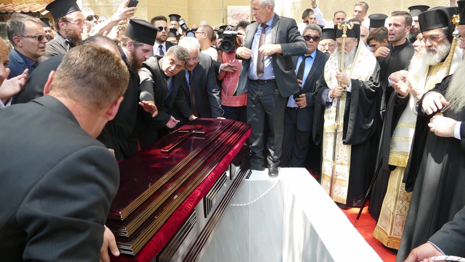 Οι σκηνές που εκτυλίχθηκαν πάνω από τον τάφο ήταν συγκλονιστικές με τους ιερείς, με δάκρυα στα μάτια, να αποχαιρετούν τον πνευματικό τους πατέρα.