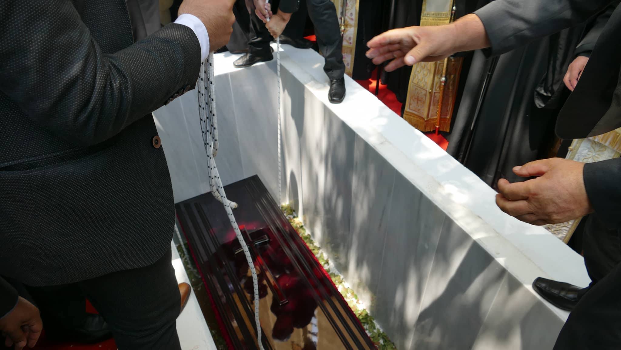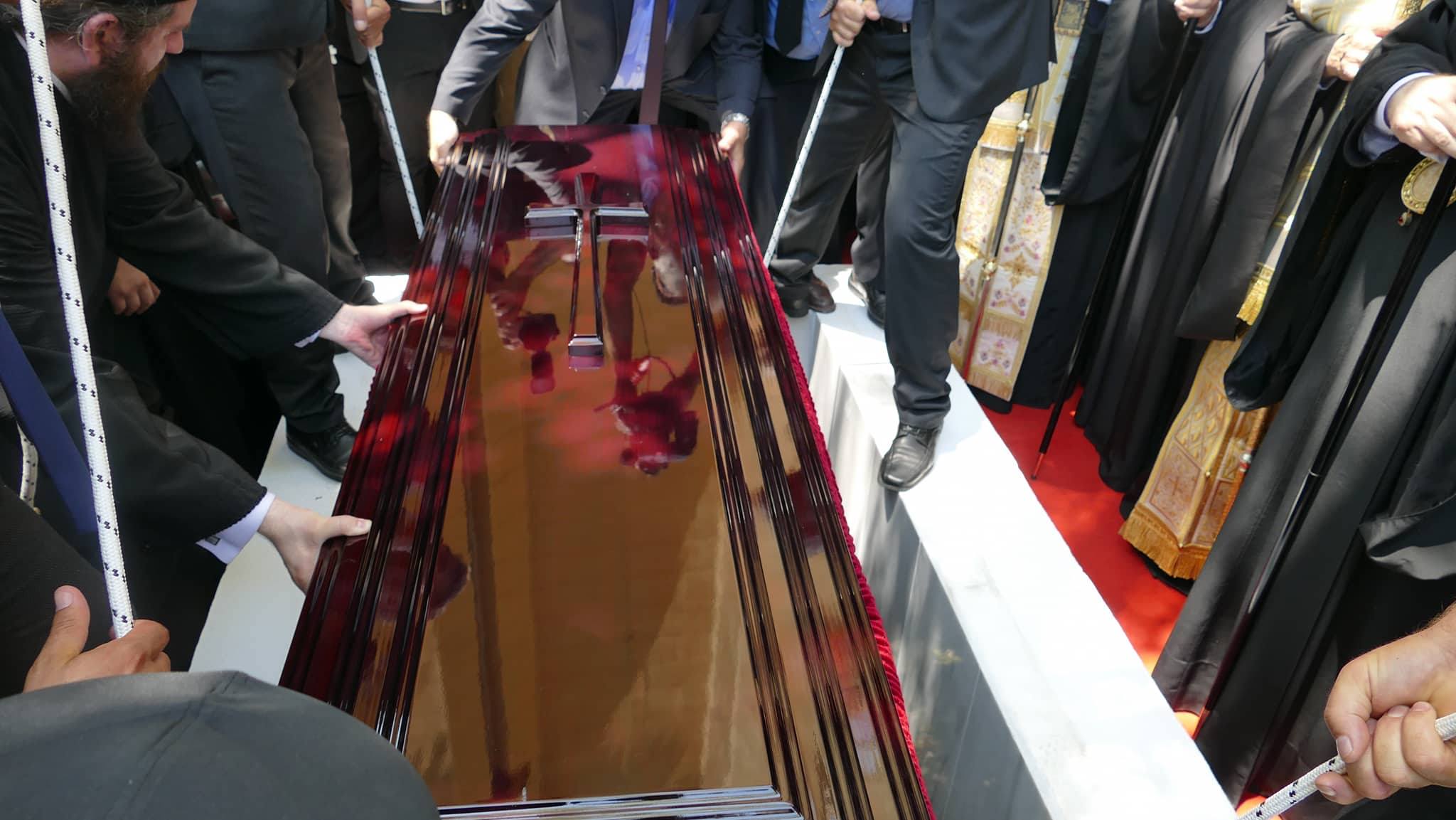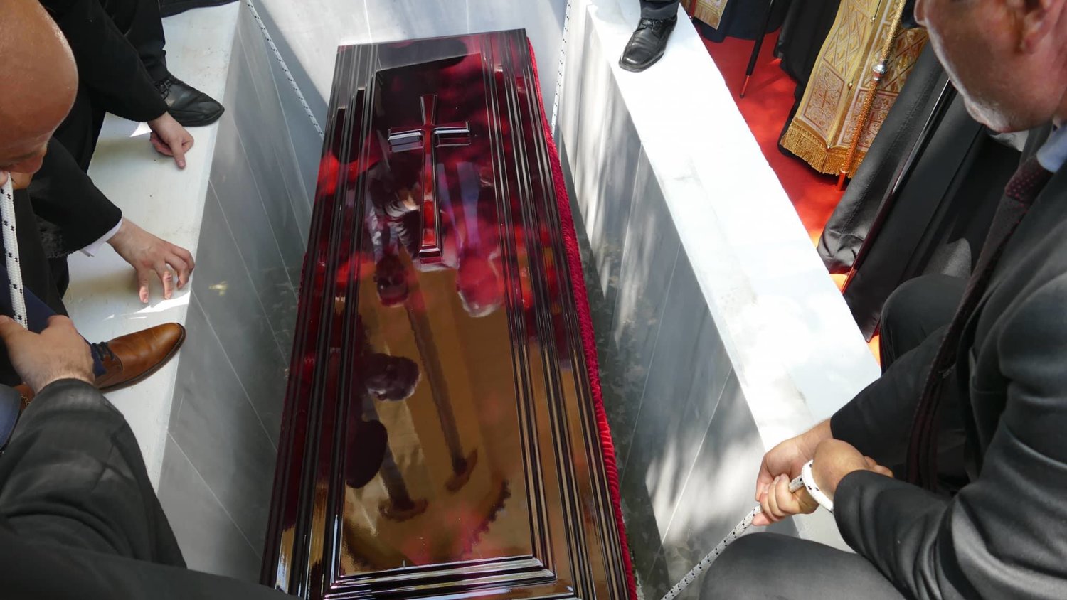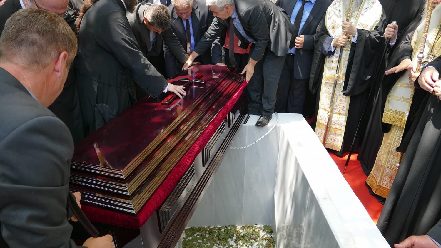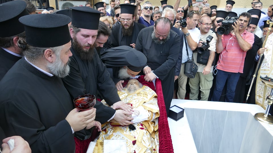 Οι σκηνές που εκτυλίχθηκαν πάνω από τον τάφο ήταν συγκλονιστικές με τους ιερείς, με δάκρυα στα μάτια, να αποχαιρετούν τον πνευματικό τους πατέρα.