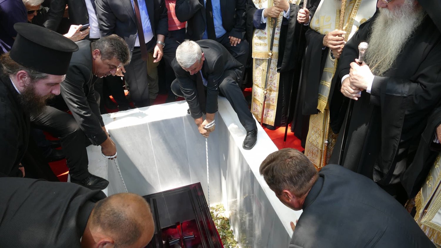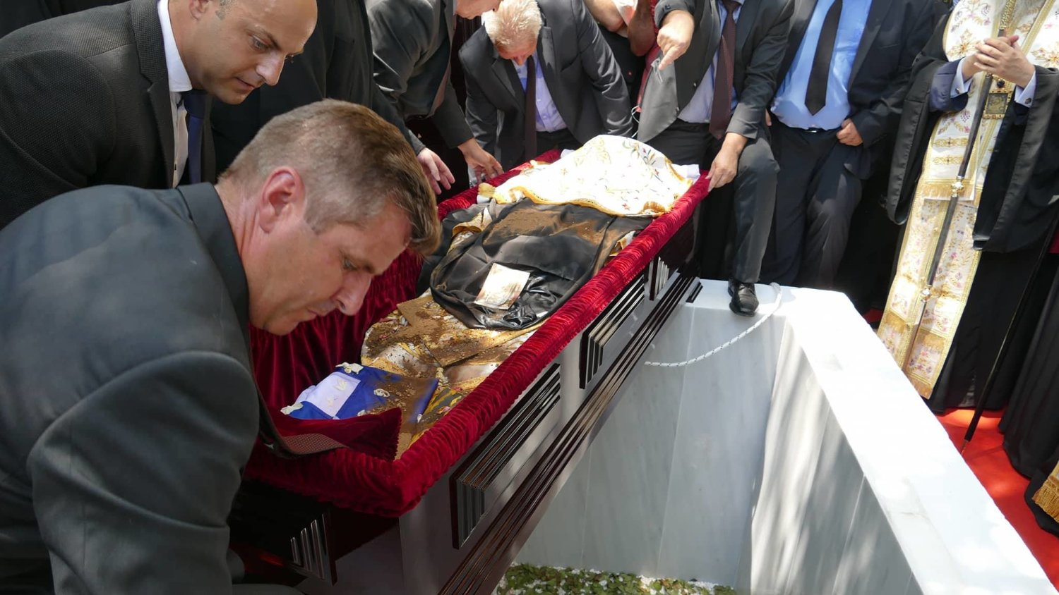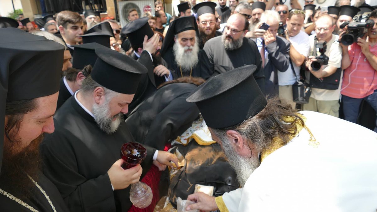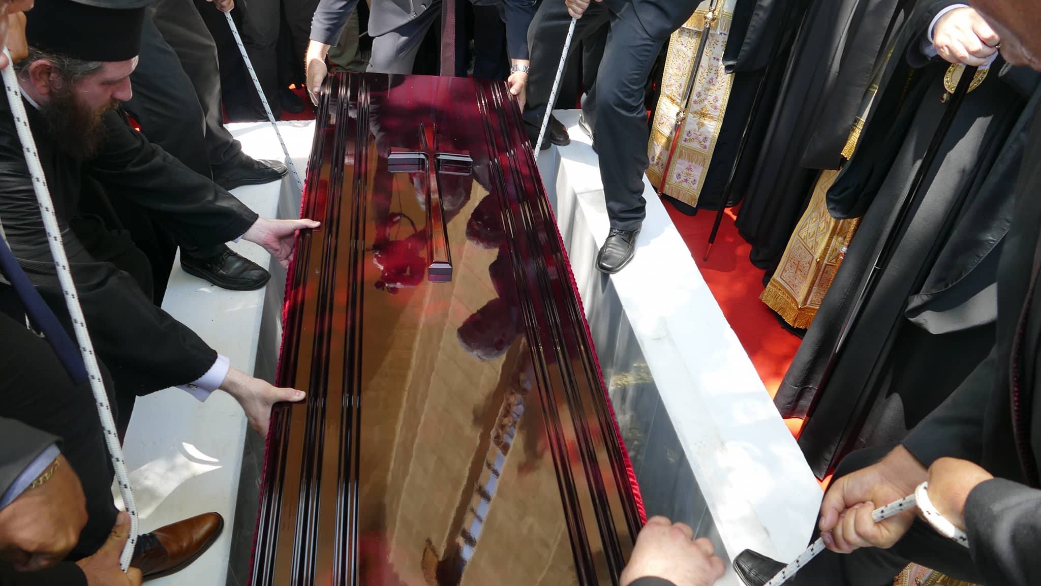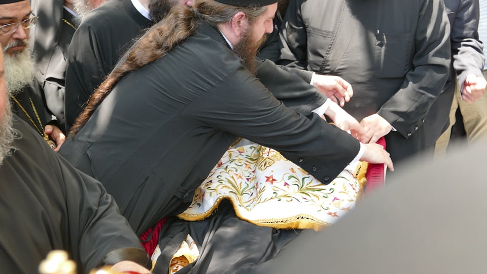 Οι σκηνές που εκτυλίχθηκαν πάνω από τον τάφο ήταν συγκλονιστικές με τους ιερείς, με δάκρυα στα μάτια, να αποχαιρετούν τον πνευματικό τους πατέρα.
