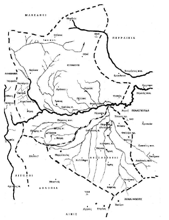 Η Εστιαιώτιδα, η Θεσσαλιώτιδα, η Δολοπία είναι έξω από το κεντρικό μας θέμα που είναι κυρίως η περιοχή της Λάρισας, αλλά πρέπει να αναφερθούμε, έστω περιληπτικά, και σ’ αυτές για να έχουμε μια πληρέστερη, το κατά δύναμη, συνολική εικόνα της αρχαίας Θεσσαλίας}