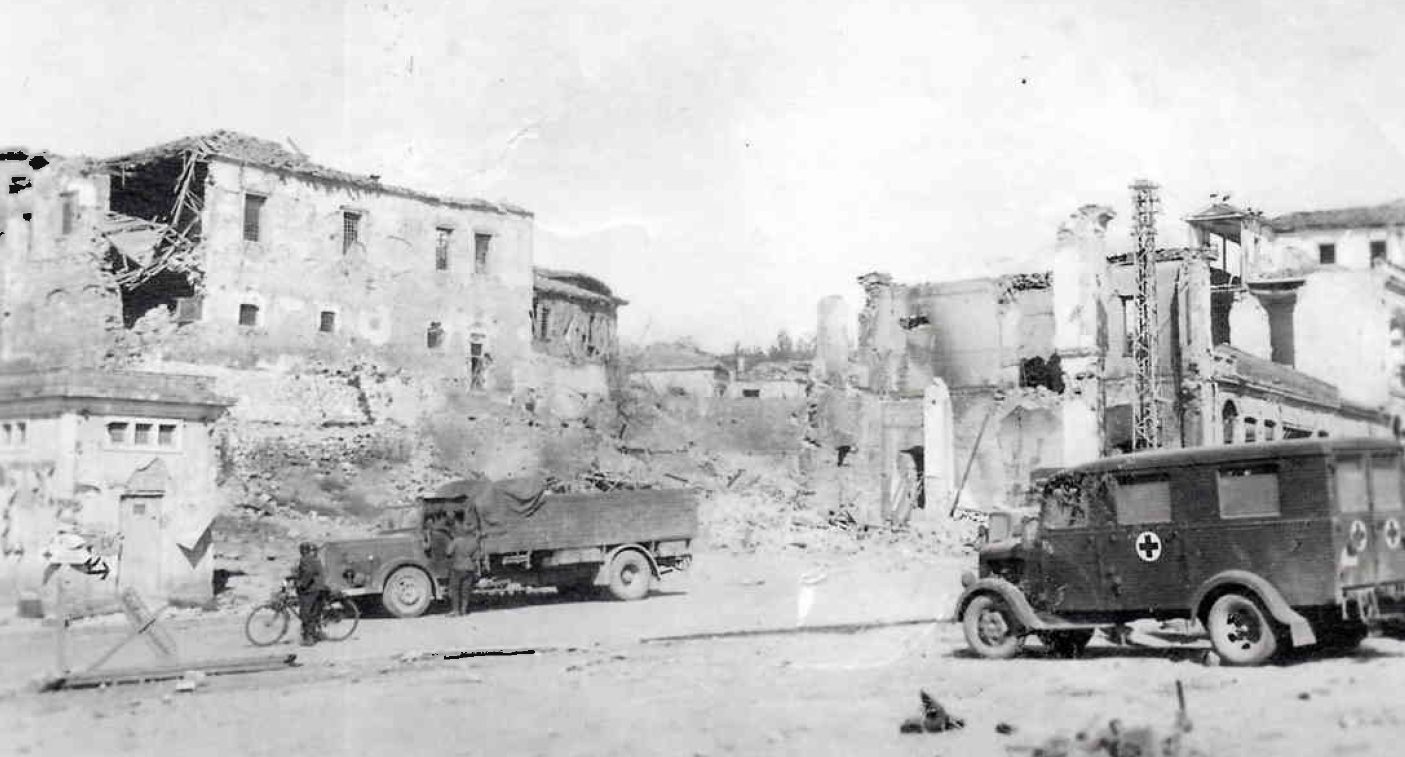 Ο κύριος όγκος όμως αφορά την πόλη της Λάρισας. Οι γέφυρες, τα κτήρια, οι δύο σιδηροδρομικοί σταθμοί, οι πρόχειροι γερμανικοί τάφοι με το γερμανικό Κοιμητήριο και το αεροδρόμιο. Οι ναζί κατακτητές μπήκαν στην πόλη μας ερχόμενοι από Ελασσόνα – Τύρναβο και βρήκαν τις γέφυρες ανατιναγμένες. Πρώτη τους φροντίδα ήταν η πρόχειρη γεφύρωση του ποταμού από τη πλευρά του αισθητικού άλσους και του Αλκαζάρ. Τα μηχανοκίνητα στρατεύματα (τάνκς, κλπ.) πέρασαν από τα Τέμπη και τους Γόννους. Οι λήψεις τους από τη Λάρισα εστιάζονται στην οδό Μακεδονίας (Βενιζέλου σήμερα), στην περιοχή της Δημοτικής Αγοράς (πλατεία Μπλάνα σήμερα) και την Κεντρική πλατεία.