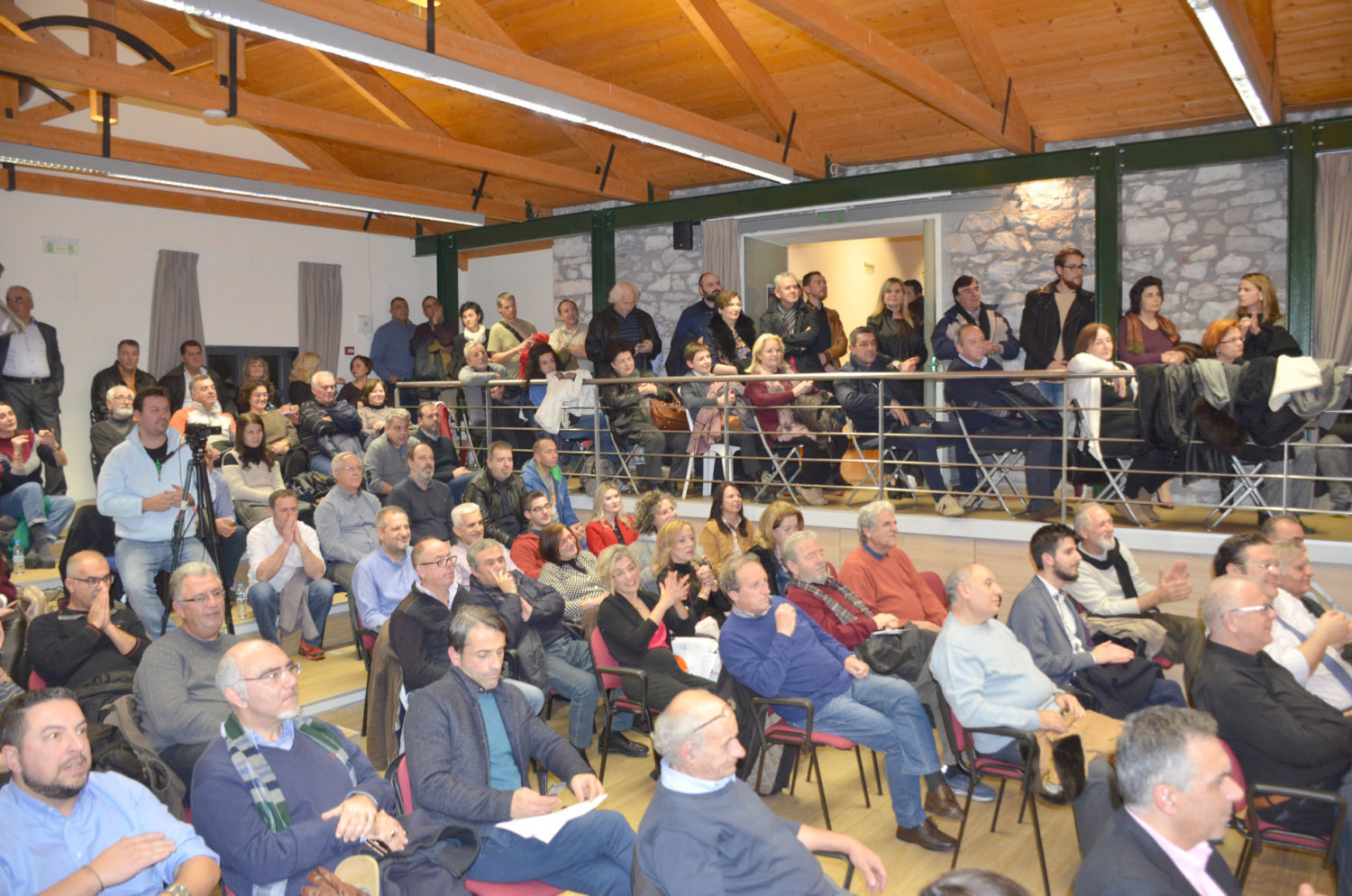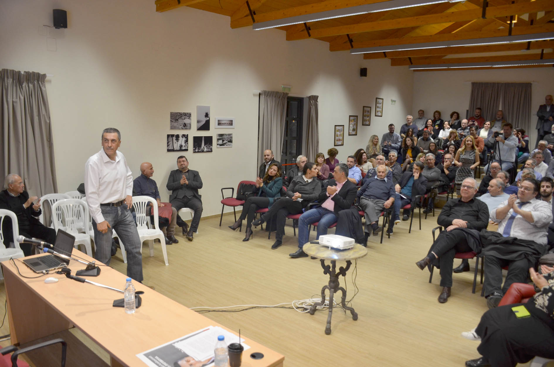 Σωστή αποδείχθηκε η επιλογή της αίθουσας στον 2ο όροφο του Μύλου του Παππά, η οποία γέμισε ασφυκτικά, υπήρχαν όρθιοι στα σκαλοπάτια και στους διαδρόμους, ενώ από τους διοργανωτές προβλέφθηκε η εκδήλωση να προβάλλεται ζωντανά έξω από την αίθουσα όπου την παρακολούθησαν όσοι δεν κατάφεραν να μπουν μέσα…