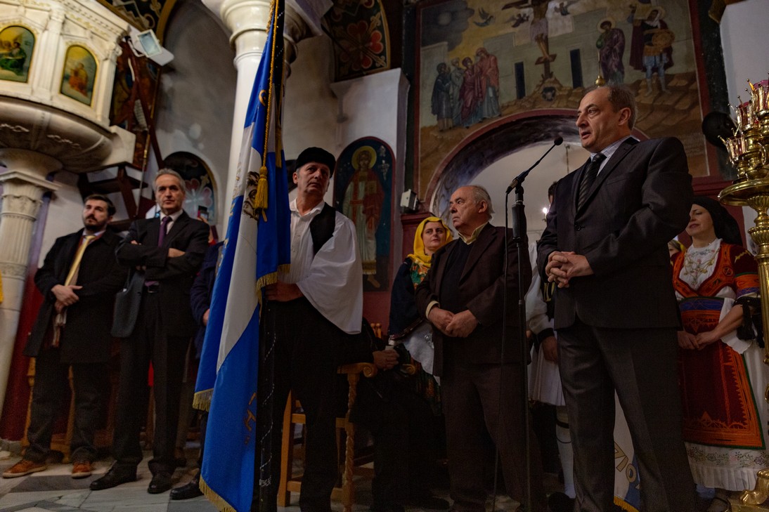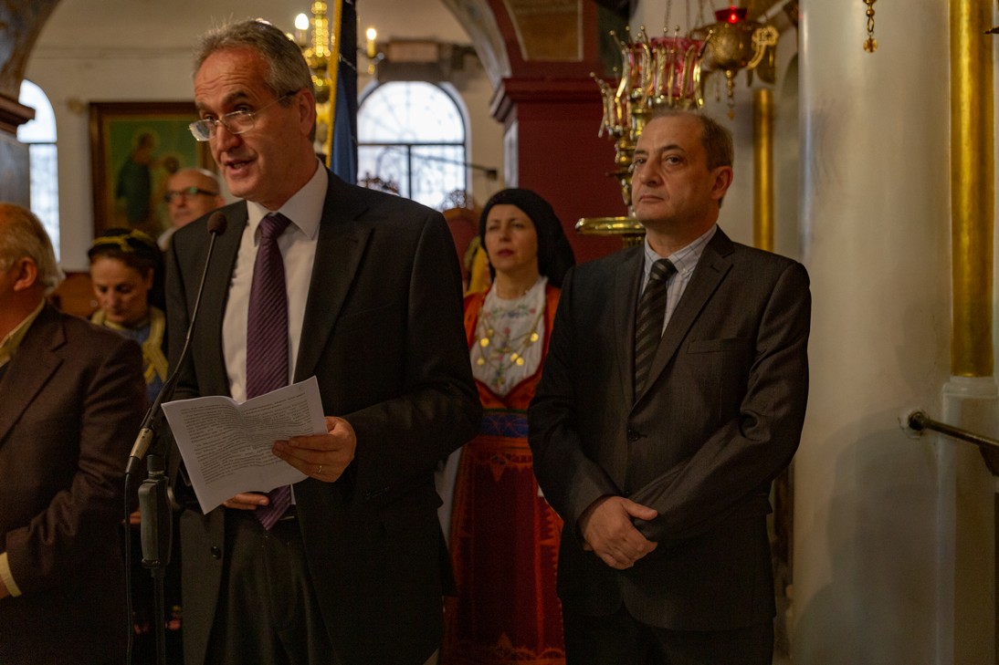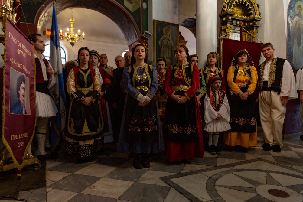 Στο πλαίσιο της τιμητικής εορταστικής εκδήλωσης, πραγματοποιήθηκε Πανηγυρική Δοξολογία, στον Ι.Ν. Αγίας Αικατερίνης, στην Πλάκα και ακολούθησε χαιρετισμός από τον Πρόεδρο της Πανθεσσαλικής Στέγης Δρ. Στέφανο Κούτρα, ο οποίος τόνισε μεταξύ άλλων «ότι η τιμή σε όλους εκείνους που αγωνίστηκαν για να σκεφτόμαστε σήμερα ελεύθερα αναδεικνύει την πνευματική ωριμότητα του λαού μας».