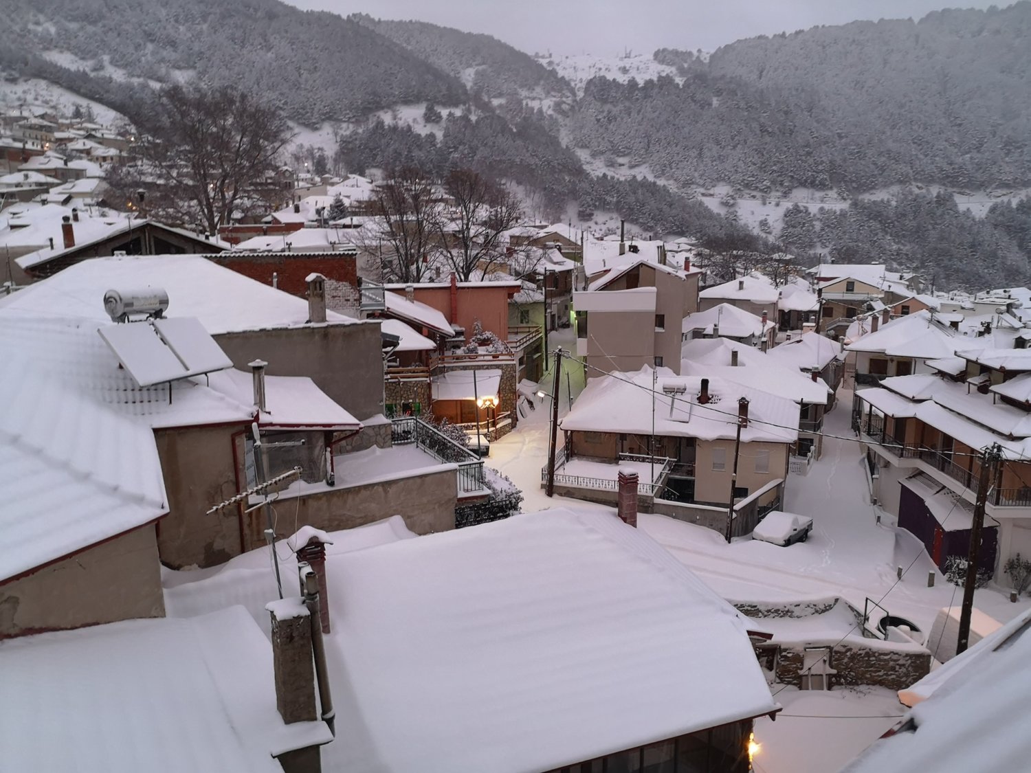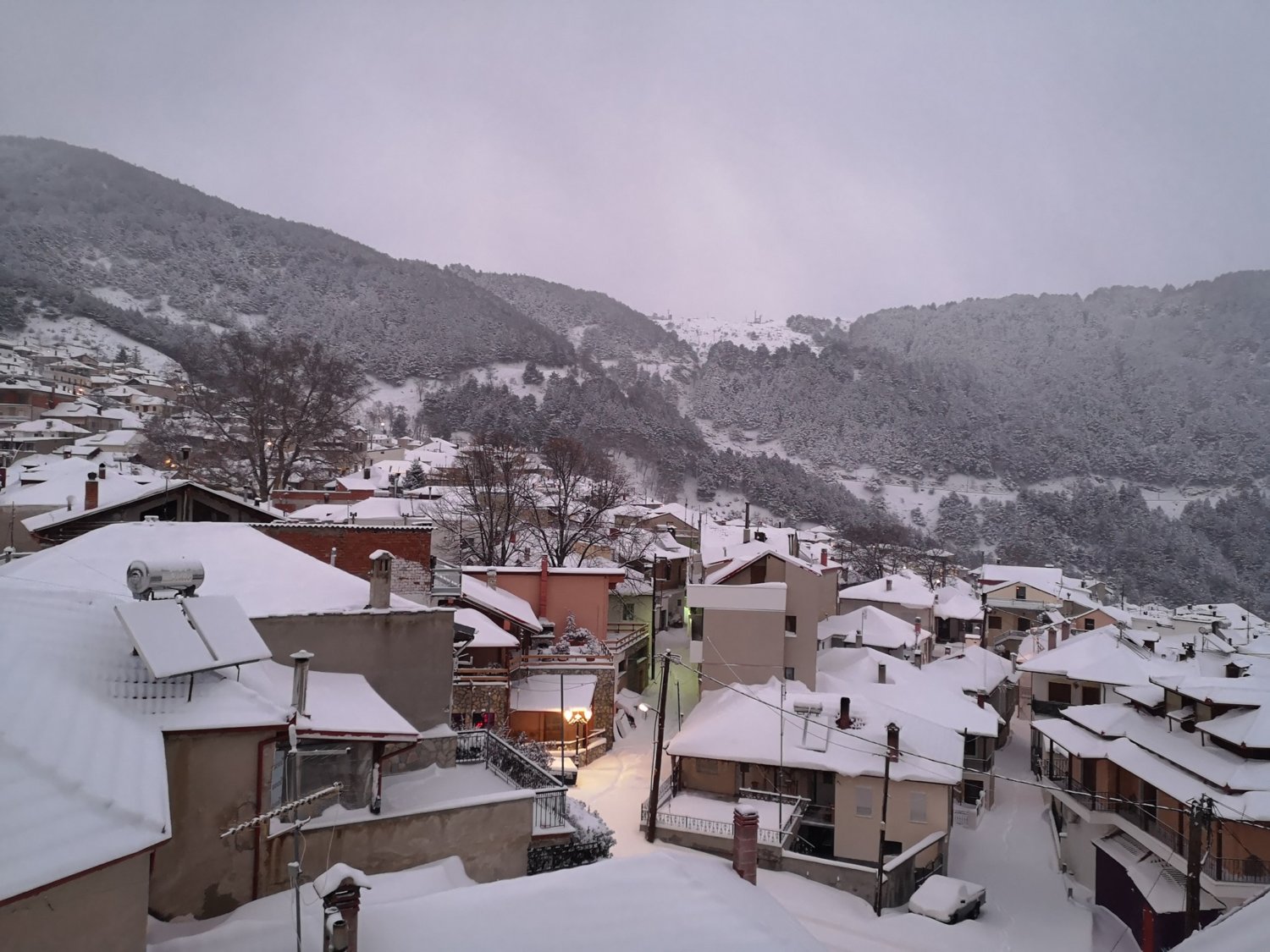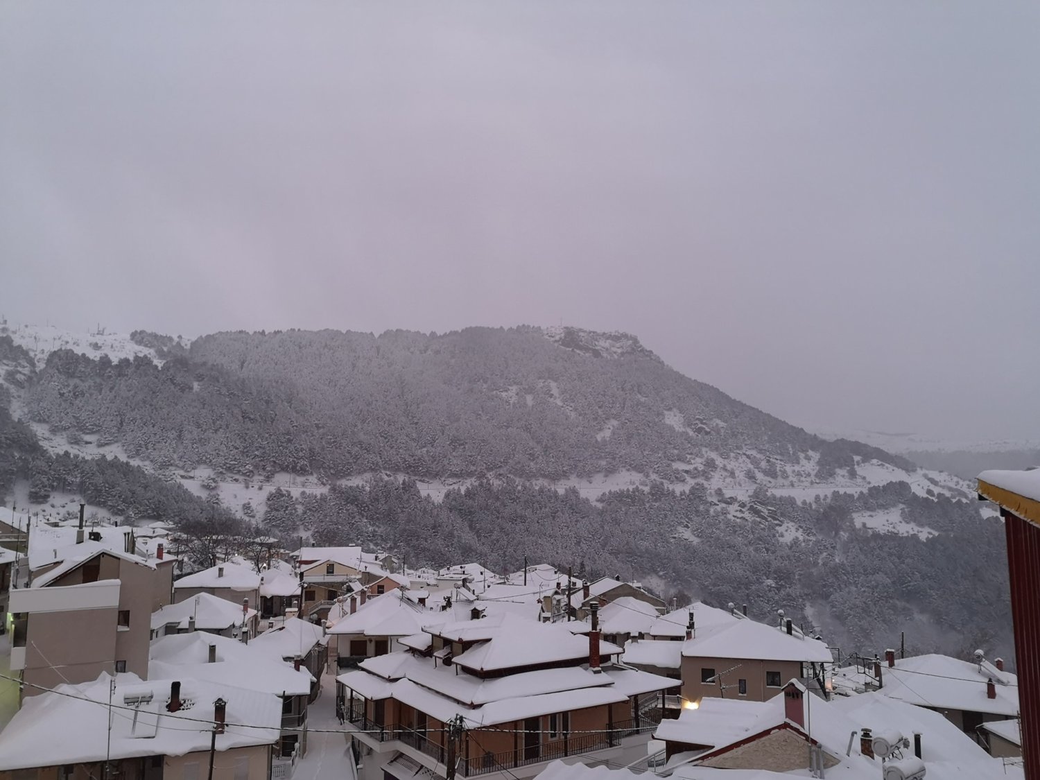 «Βουτηγμένο» στο χιόνι παραμένει το πρωί της Παρασκευής το Λιβάδι Ελασσόνας.