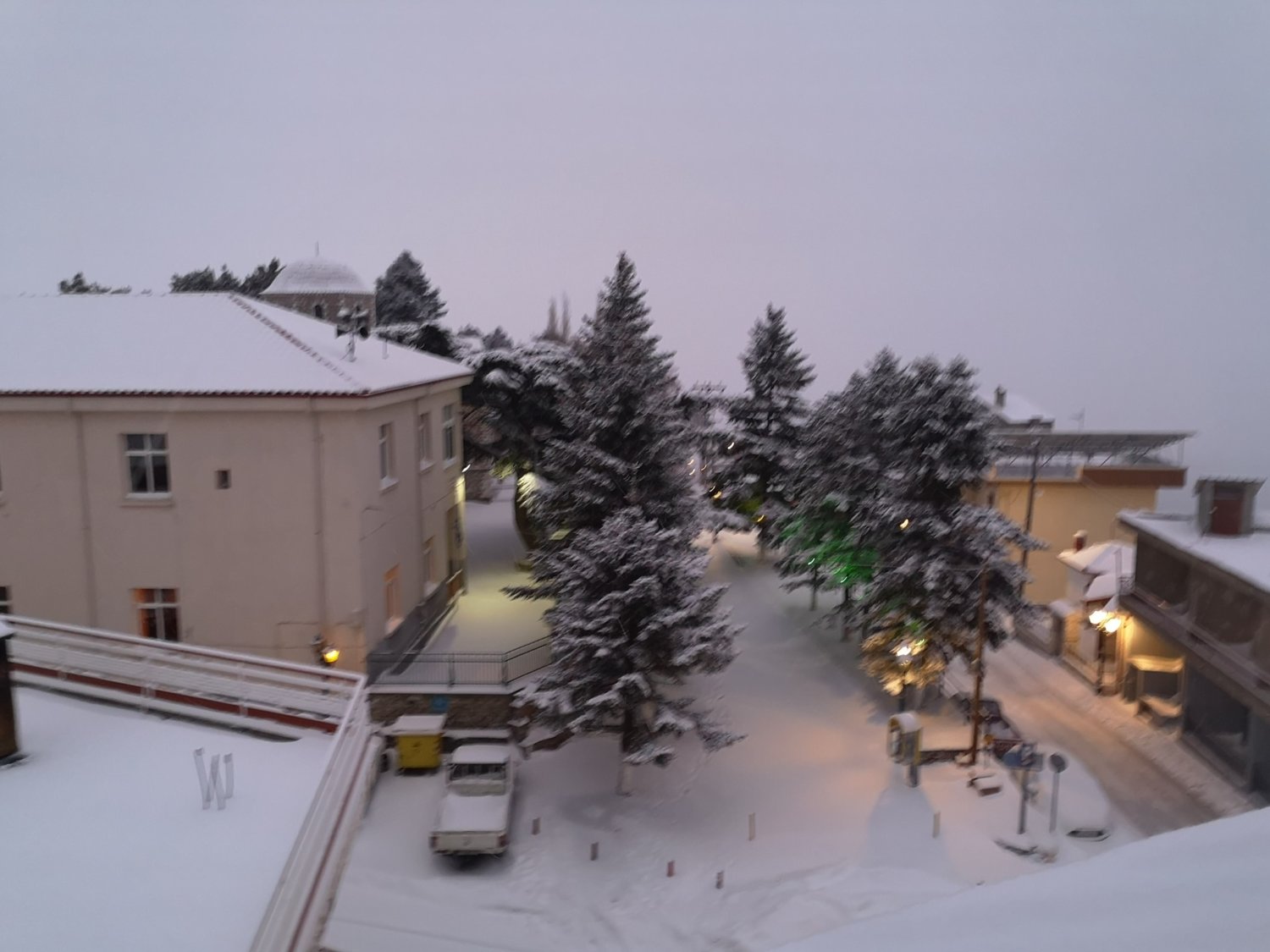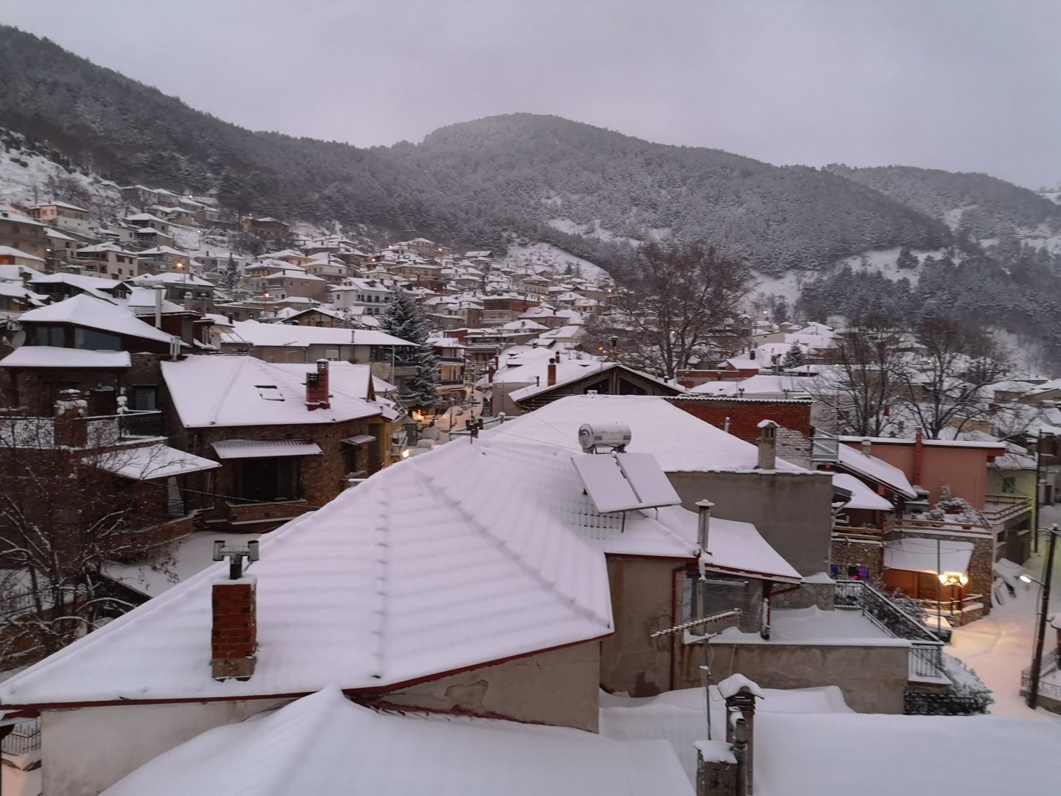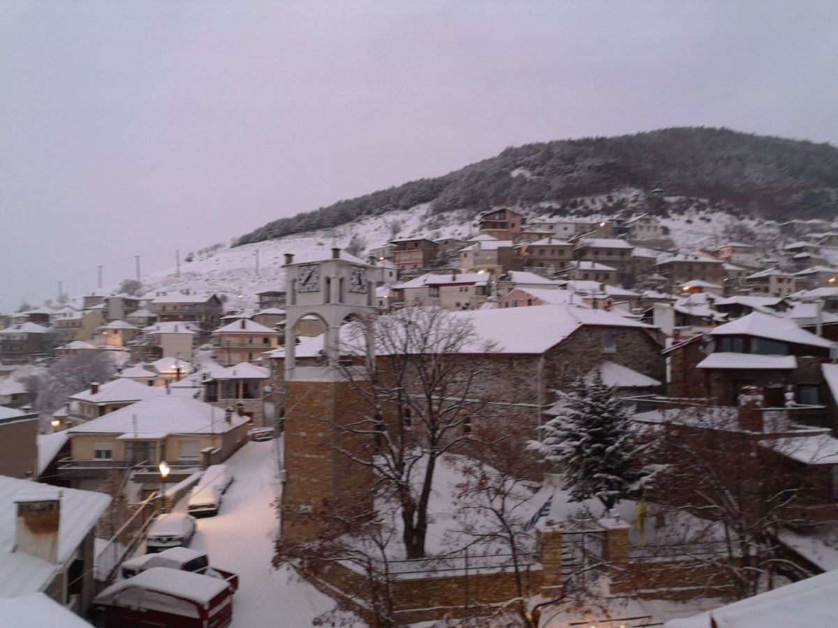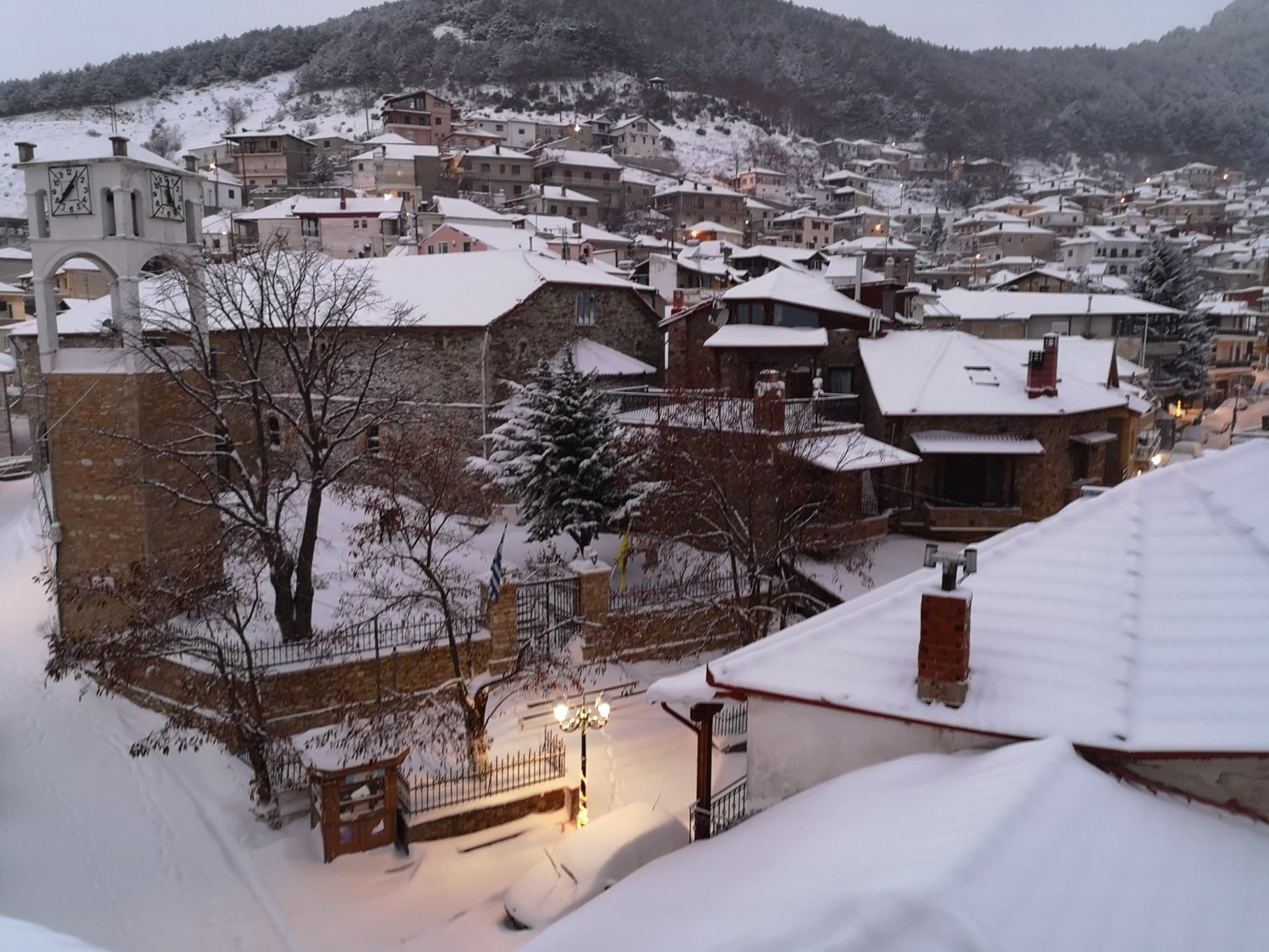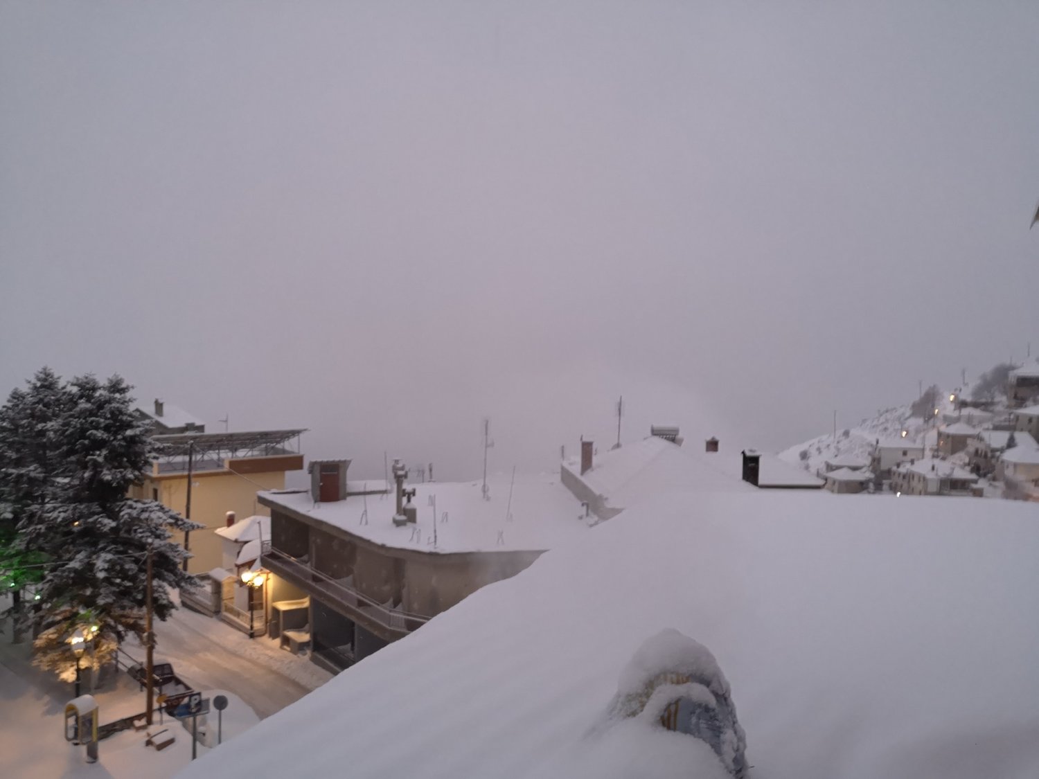 Νωρίτερα το θερμόμετρο έδειχνε -7ο C, ενώ το λευκό κυριαρχεί παντού στο τοπίο.