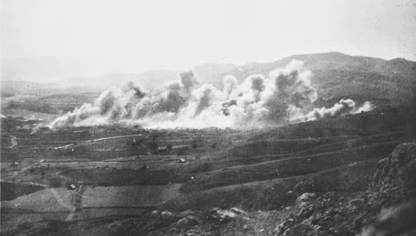 Μηλέα. Λεηλατήθηκε επανειλημμένα και κλάπηκαν οι σοδιές το 1942 και πυρπολήθηκε το καλοκαίρι του 1943.