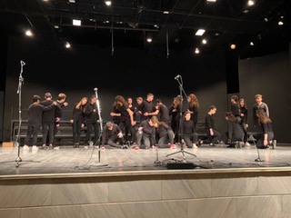 Οι Αργυροπούλου Έλενα, Κυριλλίδου Ευπραξία, Τζιατζιούλη Χάιδω, Παπαγεωργούλη Ελευθερία, Σιαμέτη Κων/να, Ντικούδη Μαρία, Νταλαγεώργου Άννα-Μαρία, Σμαΐλη Μαρία-Ειρήνη, Καραδένδρου Δήμητρα, Καραδούκα Ευφροσύνη μέλη της χορωδίας του 10ου Γυμνασίου Λάρισας με τη συνοδεία βιολιού από το μαθητή Μίτη Αθανάσιο επένδυσαν μουσικά την παράσταση με το «Άσμα Ασμάτων», που αποδόθηκε ταυτόχρονα και στην ελληνική νοηματική γλώσσα από μαθητές του 5ου Γυμνασίου Λάρισας.