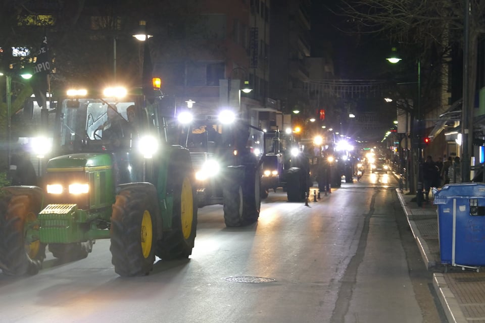 Δεκάδες τρακτέρ, άφησαν το μπλόκο και κινήθηκαν στις κεντρικές οδούς της πόλης, δίνοντας έναν άλλο τόνο με τα συνεχή κορναρίσμά τους, ενώ υπήρχε και διανομή φυλλαδίων στα οποία καταγράφονταν τα αιτήματά τους.
