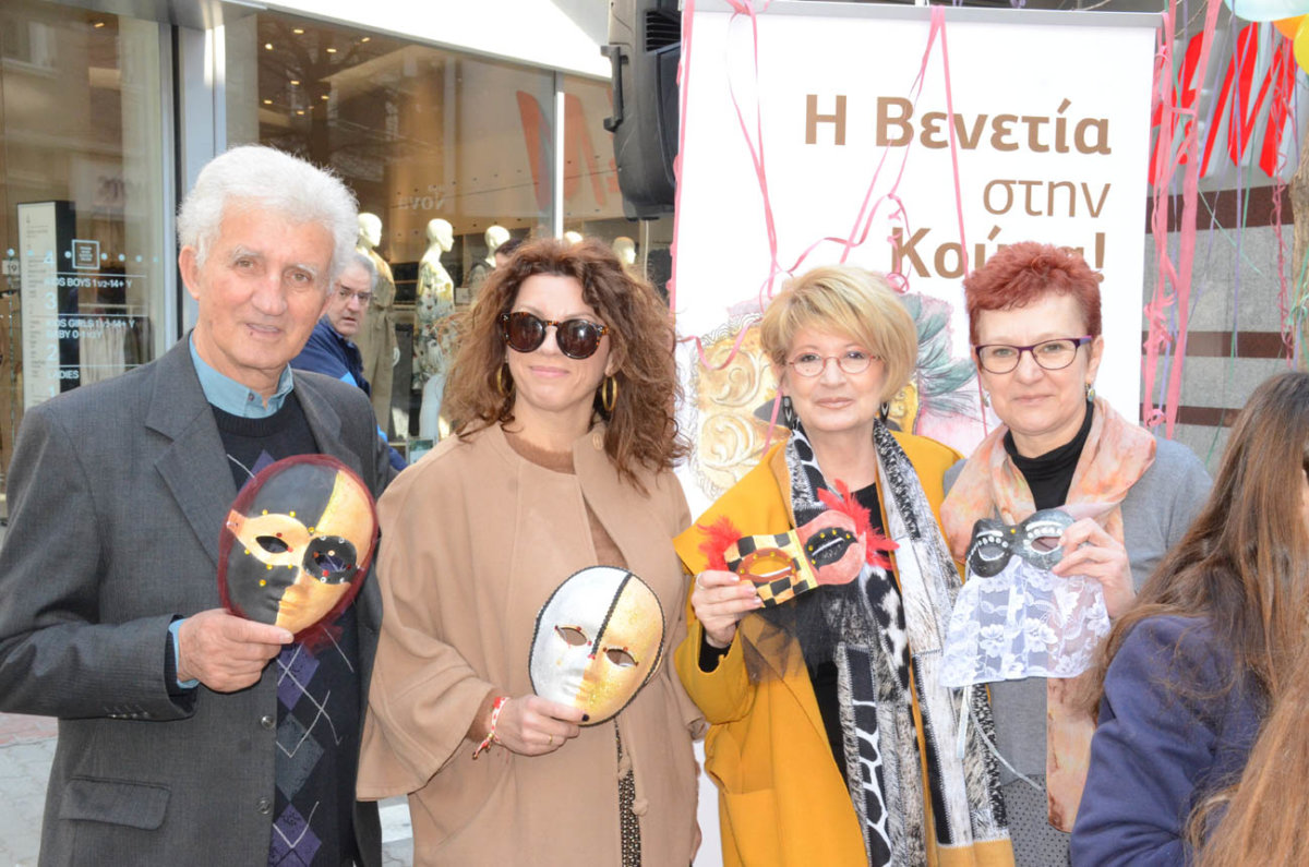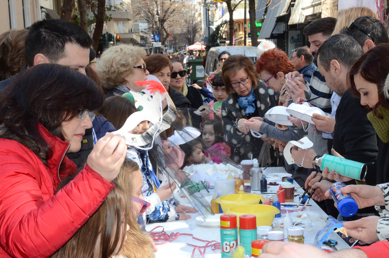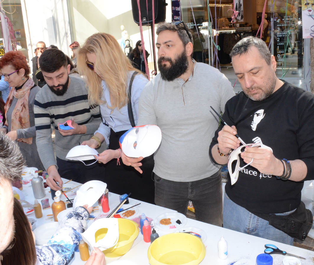 Στον πεζόδρομο της Κούμα (στο ύψος του Γαλλικού Ινστιτούτου) μικροί και μεγάλοι ανταποκρίθηκαν στο κάλεσμα των Λεσχών Πολιτισμού του Δήμου Λαρισαίων και δημιούργησαν βενετσιάνικες μάσκες με τη καθοδήγηση των εικαστικών -καθηγητών των Λεσχών Πολιτισμού Δήμου Λαρισαίων.