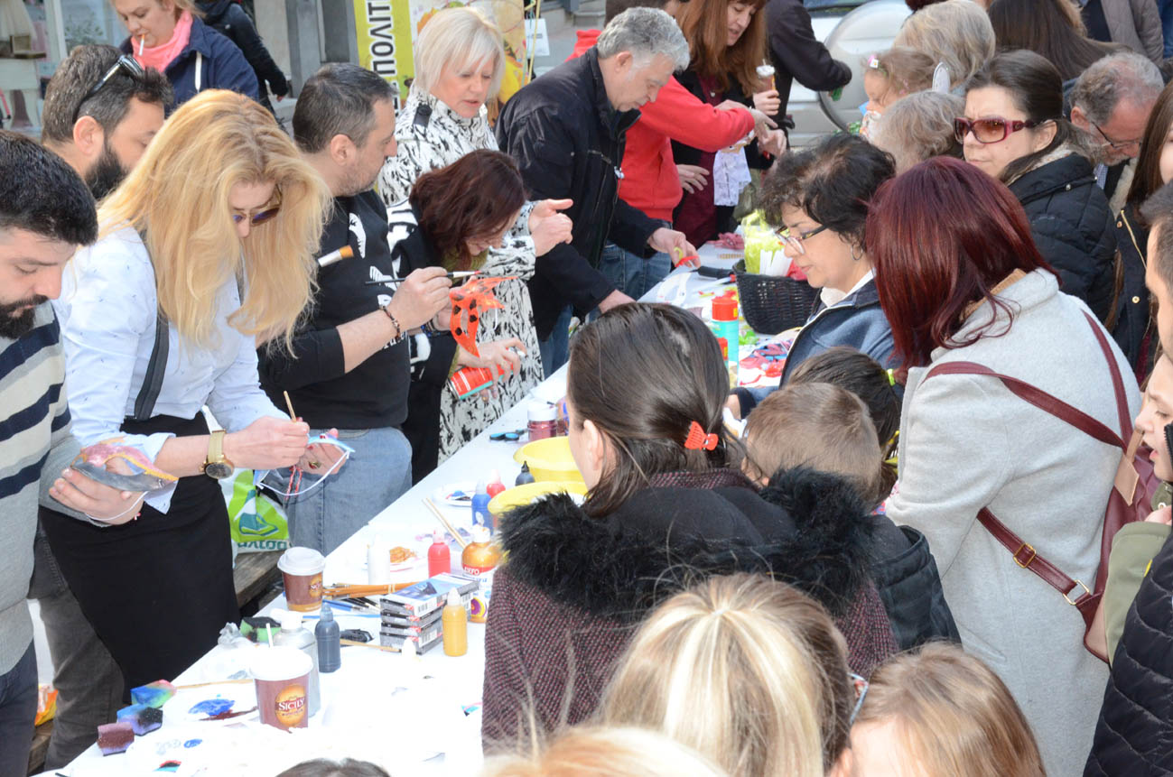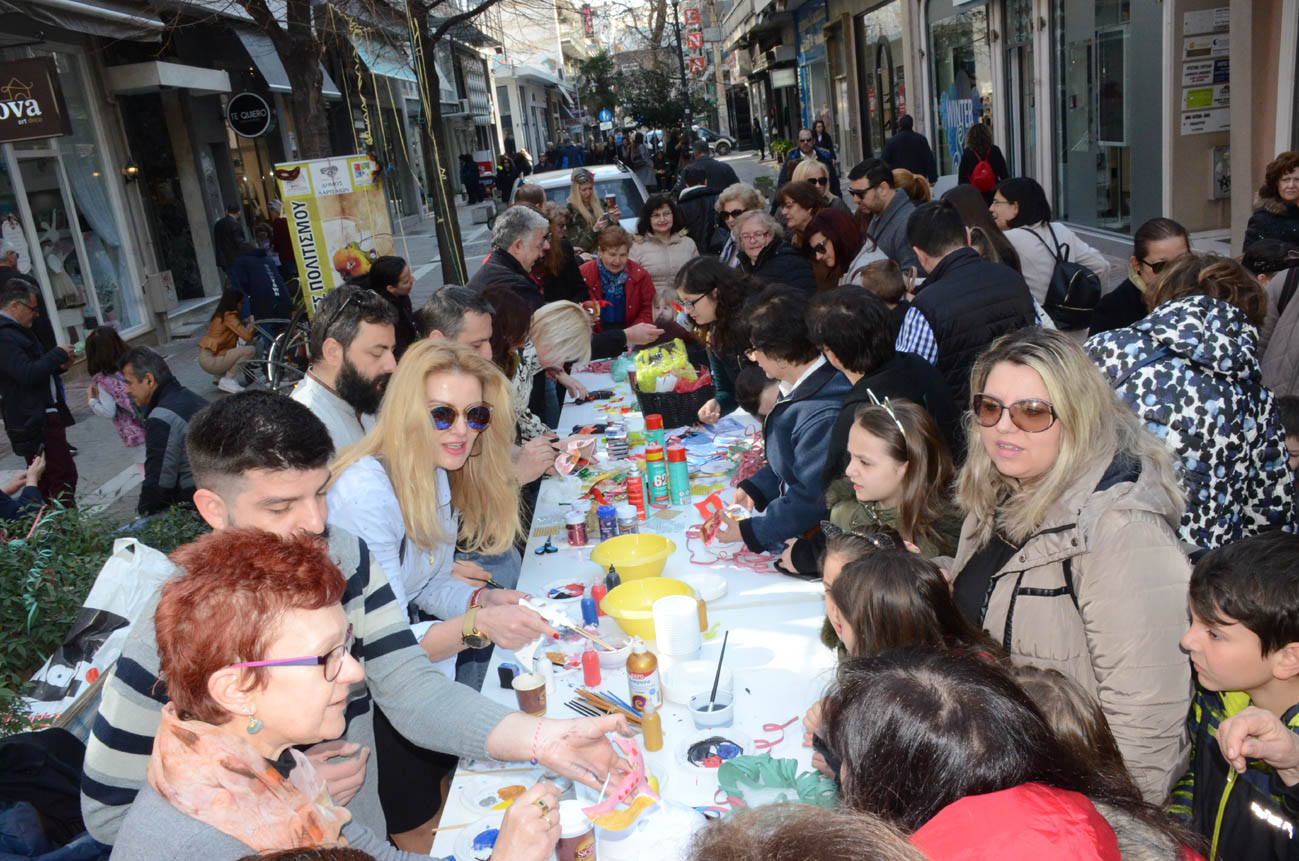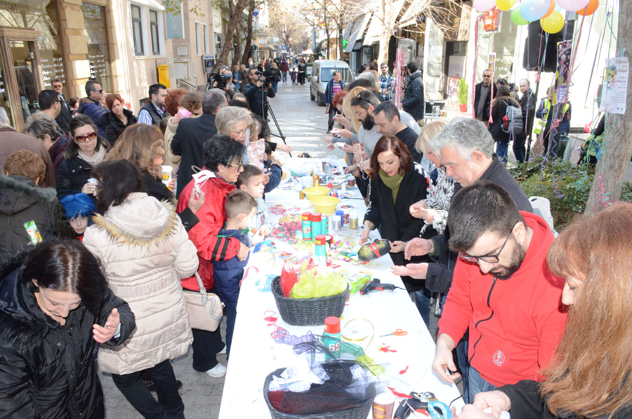 Στον πεζόδρομο της Κούμα (στο ύψος του Γαλλικού Ινστιτούτου) μικροί και μεγάλοι ανταποκρίθηκαν στο κάλεσμα των Λεσχών Πολιτισμού του Δήμου Λαρισαίων και δημιούργησαν βενετσιάνικες μάσκες με τη καθοδήγηση των εικαστικών -καθηγητών των Λεσχών Πολιτισμού Δήμου Λαρισαίων.