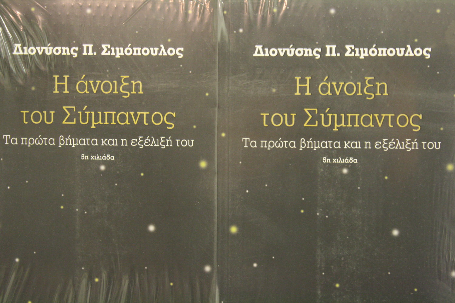 Παρουσιάστηκε το νέο βιβλίο του αστροφυσικού Διονύση Π. Σιμόπουλου με τίτλο «Η Άνοιξη του Σύμπαντος» σε εκδήλωση που πραγματοποιήθηκε το βράδυ της Τετάρτης στην Κεντρική Δημόσια Βιβλιοθήκη Λάρισας.