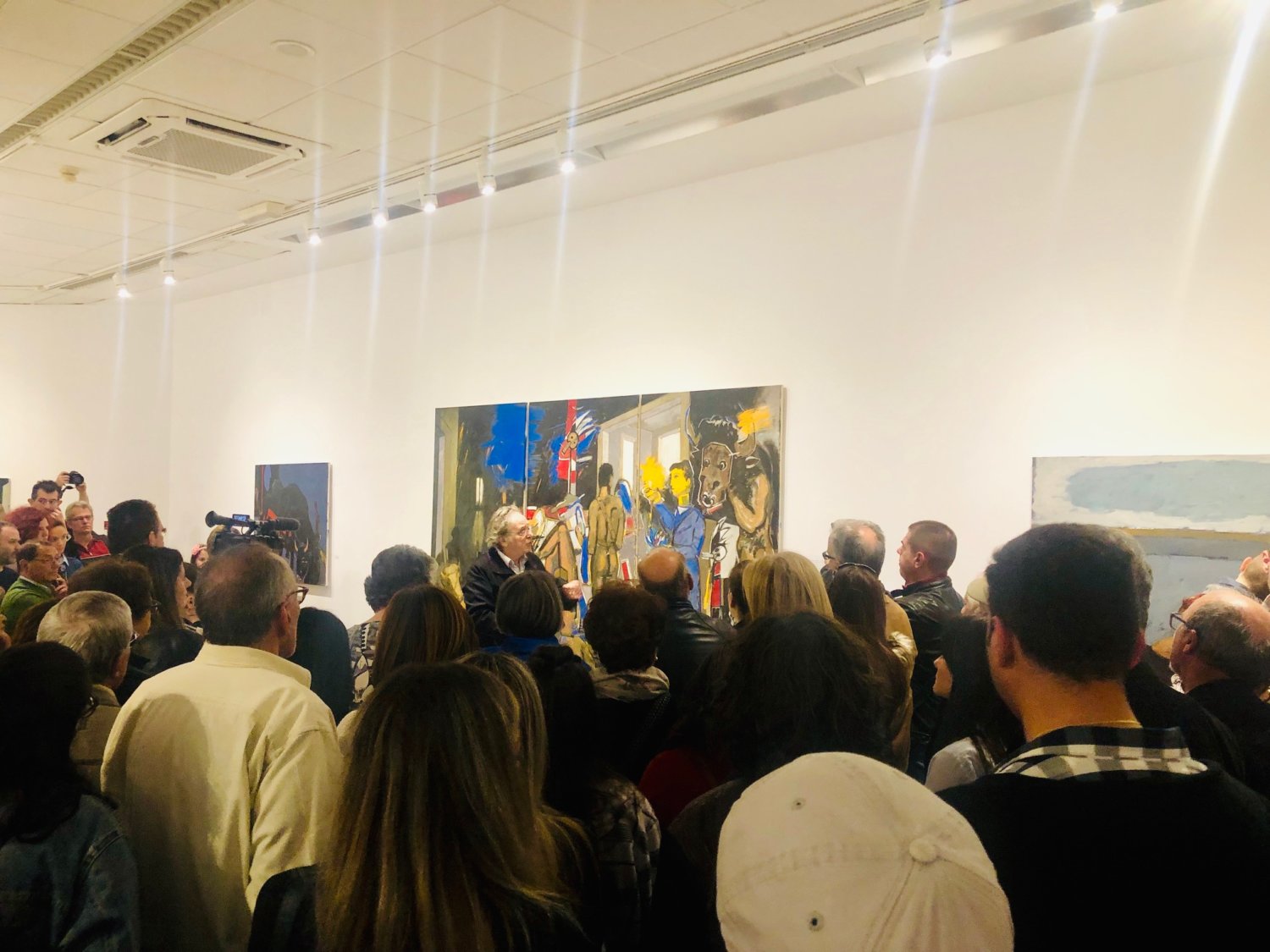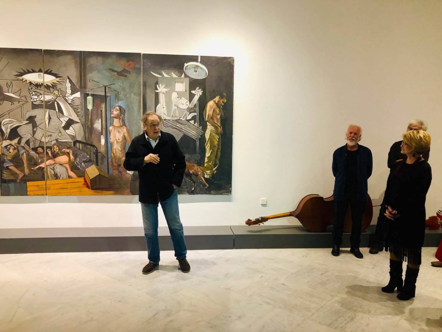 Στη συνέχεια, ο Κυριάκος Κατζουράκης ξενάγησε το φιλότεχνο κοινό στην έκθεσή του «Αναφορά στην Γκουέρνικα» αναλύοντας το εικαστικό του σύμπαν.