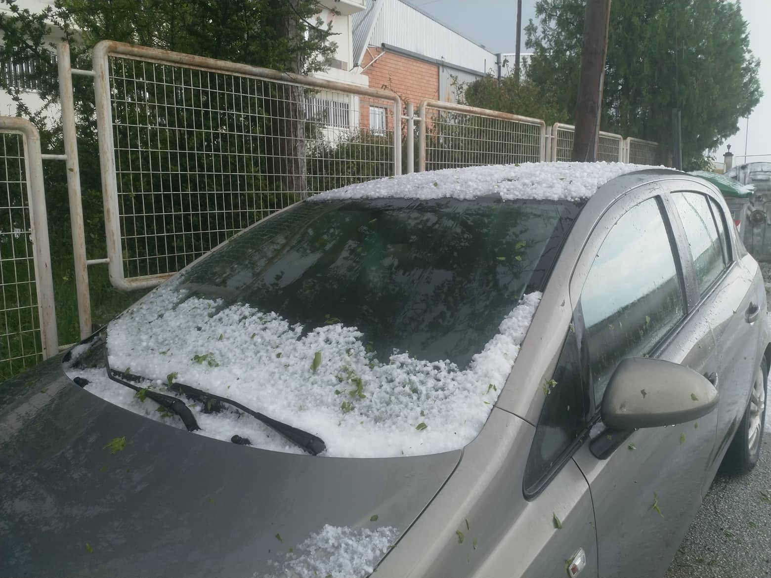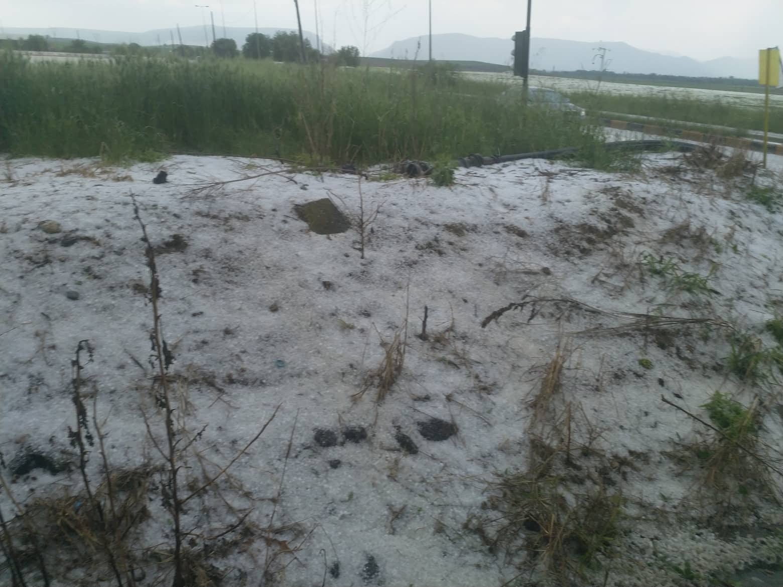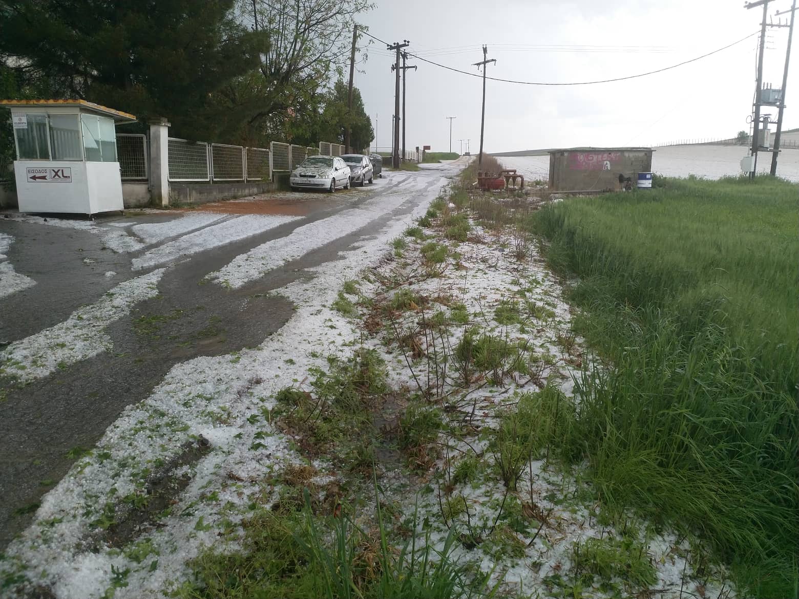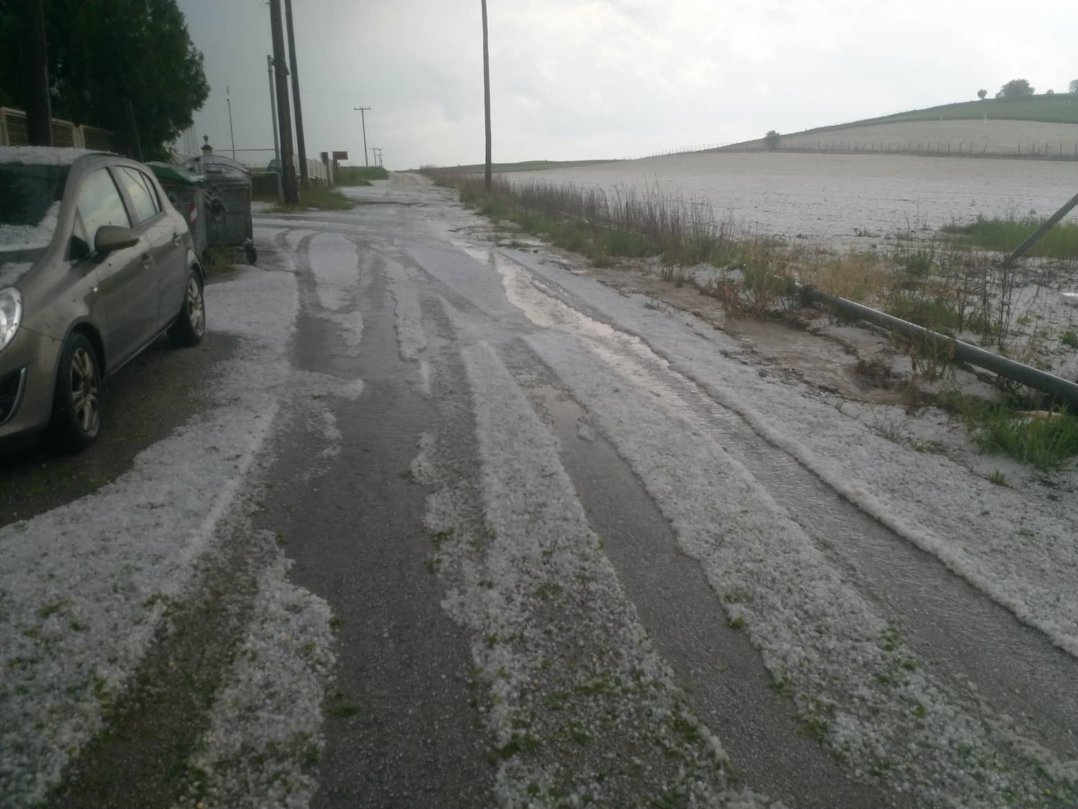 Σφοδρή χαλαζόπτωση έπληξε νωρίτερα το μεσημέρι της Πέμπτης την Τερψιθέα και περιοχές στις παρυφές της Λάρισας «ασπρίζοντας» τα πάντα.