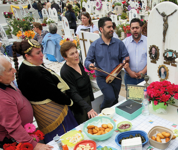 Μετά την Ανάσταση, κεντρικό ρόλο στα έθιμα της εποχής διαδραματίζει το ταφικό έθιμο του Πόντου, σύμφωνα με το οποίο οι ψυχές των νεκρών ανεβαίνουν στον επίγειο κόσμο την ημέρα της Ανάστασης για να παραμείνουν ως την ημέρα του Αγίου Πνεύματος. Έτσι τη Δεύτερη μέρα του Πάσχα, οι συγγενείς τους στήνουν ολόκληρο τραπέζι πάνω στα μνήματα, υπό τους ήχους της ποντιακής λίρας.