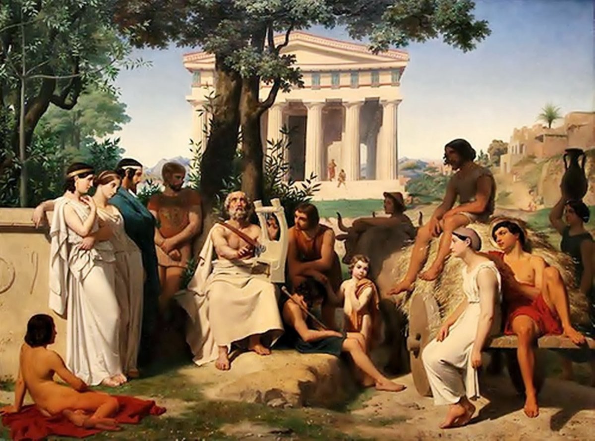 ΣΗΜΕΙΩΣΗ. Ο ΔΗΜΟΔΟΚΟΣ: Ο Δημόδοκος (από τις λέξεις δήμος= λαός και δέχομαι, δηλαδή αυτός που είναι ευπρόσδεκτος από τον λαό) είναι γνωστός ένας τυφλός Φαίακας αοιδός που ζούσε στο νησί των Φαιάκων κατά την εποχή που έφθασε εκεί ναυαγός ο Οδυσσέας. Στην Οδύσσεια, ο Αλκίνοος καλεί τον Δημόδοκο για να διασκεδάσει τον Οδυσσέα: «Και το θεϊκό τραγουδιστή Δημόδοκο ας καλέσουν, / γιατί του χάρισε ο θεός του τραγουδιού τη χάρη, / να μας λιγώνει όταν του πει να τραγουδά η καρδιά του» (θ 43-45). Ενώ στη ραψωδία ν της Οδύσσειας διαβάζουμε: «Κι ο θεϊκός τραγουδιστής Δημόδοκος στη μέση / τους τραγουδούσε, που ο λαός περίσσα τον τιμούσε» (ν 27-28) σε ένα αρχοντικό τραπέζι-γεύμα.