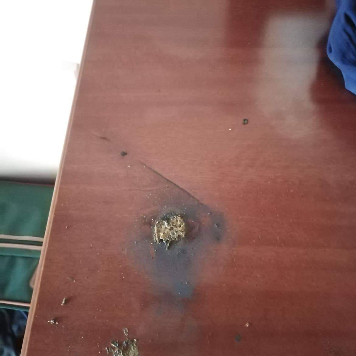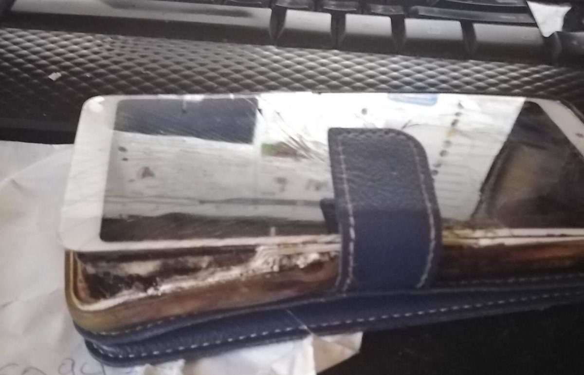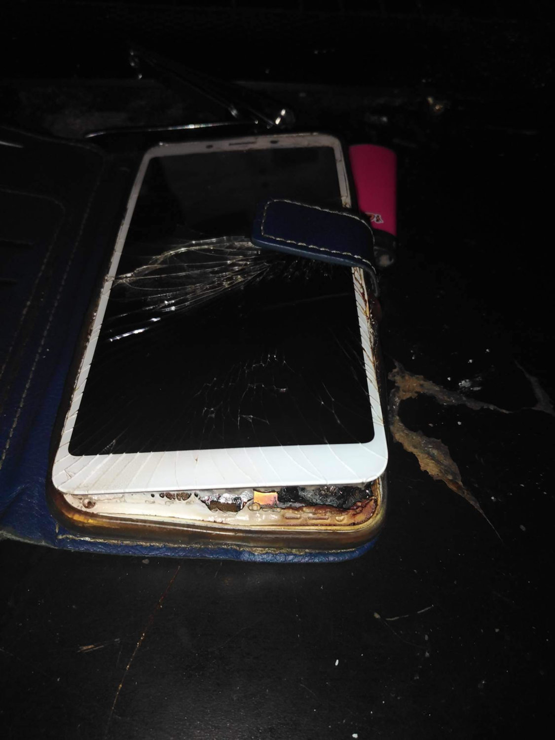 «Κάποια στιγμή γύρω στις 4 τα ξημερώματα ακούω μέσα στον ύπνο μου έναν δυνατό θόρυβο και ξυπνώντας βλέπω φωτιά και καπνό στο τραπεζάκι και κομμάτια πλαστικού να Αποκολλούνται από το κινητό. Το κινητό έσκασε δίπλα από τα κρεβάτια που κοιμόμασταν και το δωμάτιο γέμισε καπνό. Άνοιξα τα παράθυρα για να μπορέσουμε να αναπνεύσουμε», περιγράφει στη larissanet o παθών. Μάλιστα στις φωτογραφίες που ακολουθούν φαίνεται ότι το τραπεζάκι στο σημείο που ήταν το κινητό έχει κολλήσει πλαστικό και έχει καεί.