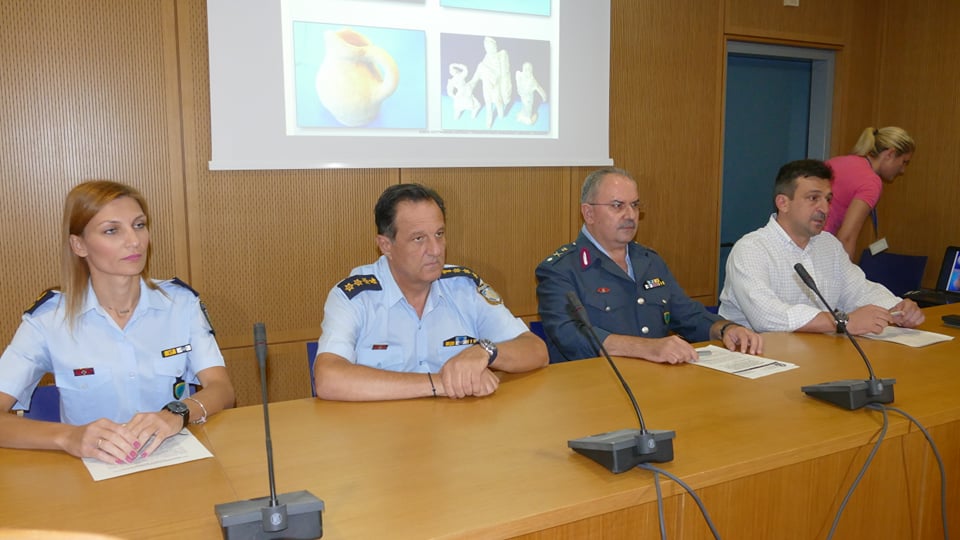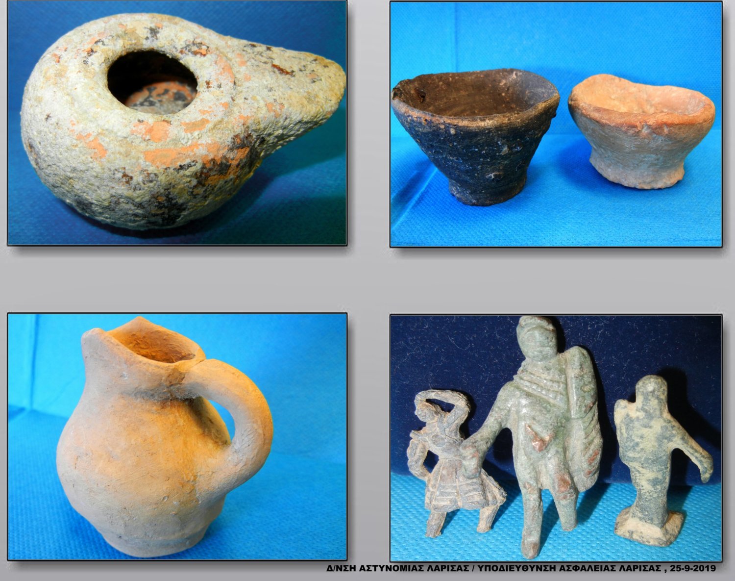 Σας καλέσαμε σήμερα εδώ, στην έδρα της Γενικής Περιφερειακής Αστυνομικής Διεύθυνσης Θεσσαλίας προκειμένου σας παρουσιάσουμε μια πολύ σημαντική επιτυχία της Υποδιεύθυνσης Ασφάλειας Λάρισας, η οποία αφορά την παράνομη δραστηριοποίηση ομάδας ημεδαπών που προέβαινε τουλάχιστον από τις αρχές του έτους 2018 στη διενέργεια παρανόμων ανασκαφών στην ευρύτερη περιοχή της Θεσσαλίας και της Πιερίας, με σκοπό την ανεύρεση ή αποκάλυψη αρχαίων αντικειμένων και λοιπών πολιτιστικών αγαθών, καθώς και την αποκόμιση παρανόμου περιουσιακού οφέλους από την περαιτέρω πώλησή τους.