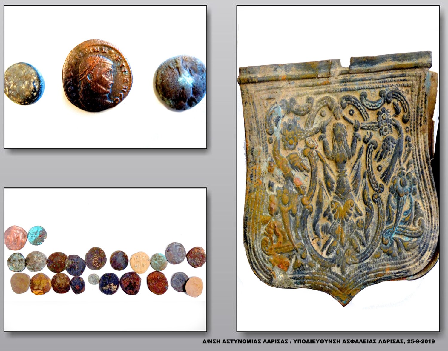 πληθώρα αντικειμένων και νομισμάτων αρχαίων, βυζαντινών, ρωμαϊκών και νεότερων χρόνων μεγάλης αρχαιολογικής αξίας,