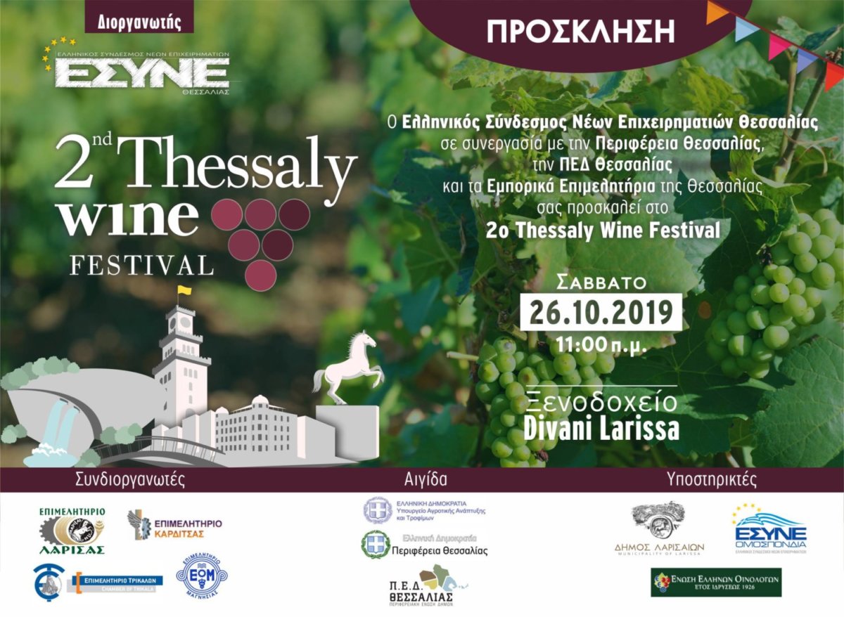 Από τον ΕΣΥΝΕ ανακοινώνεται, ότι το Σάββατο 26/10/2019 θα πραγματοποιηθεί το 2ο φεστιβάλ θεσσαλικού οίνου, στο ξενοδοχείο DIVANI PALACE στη Λάρισα.
