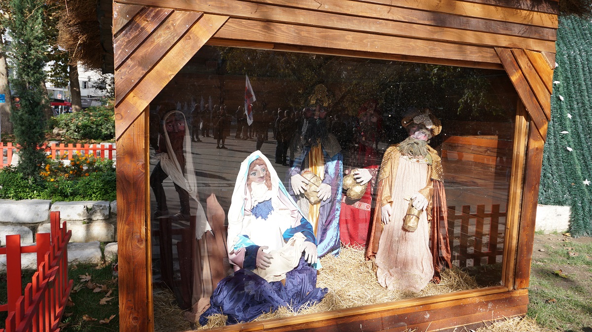 Εντύπωση και φυσικά ερωτηματικά προκαλεί η εικόνα της Φάτνης στην Κεντρική Πλατεία της Λάρισας.