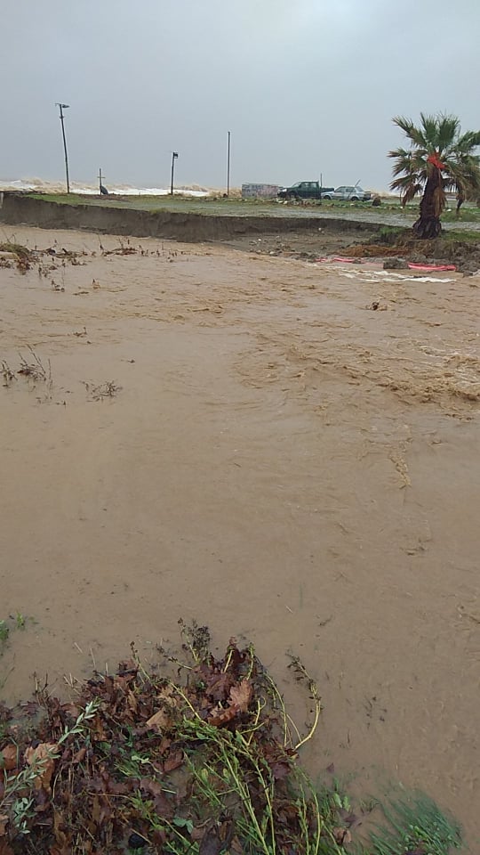 Η κακοκαιρία πραγματικά έχει προκαλέσει πολλά προβλήματα στα παράλια. όπως μπορείτε να δείτε η μανία του νερού έχει «καταπιεί» την γέφυρα Καλατράβα στον Αγιόκαμπο. Μάλιστα πέριξ του ρέματος υπάρχουν πλημμυρισμένες αυλές.