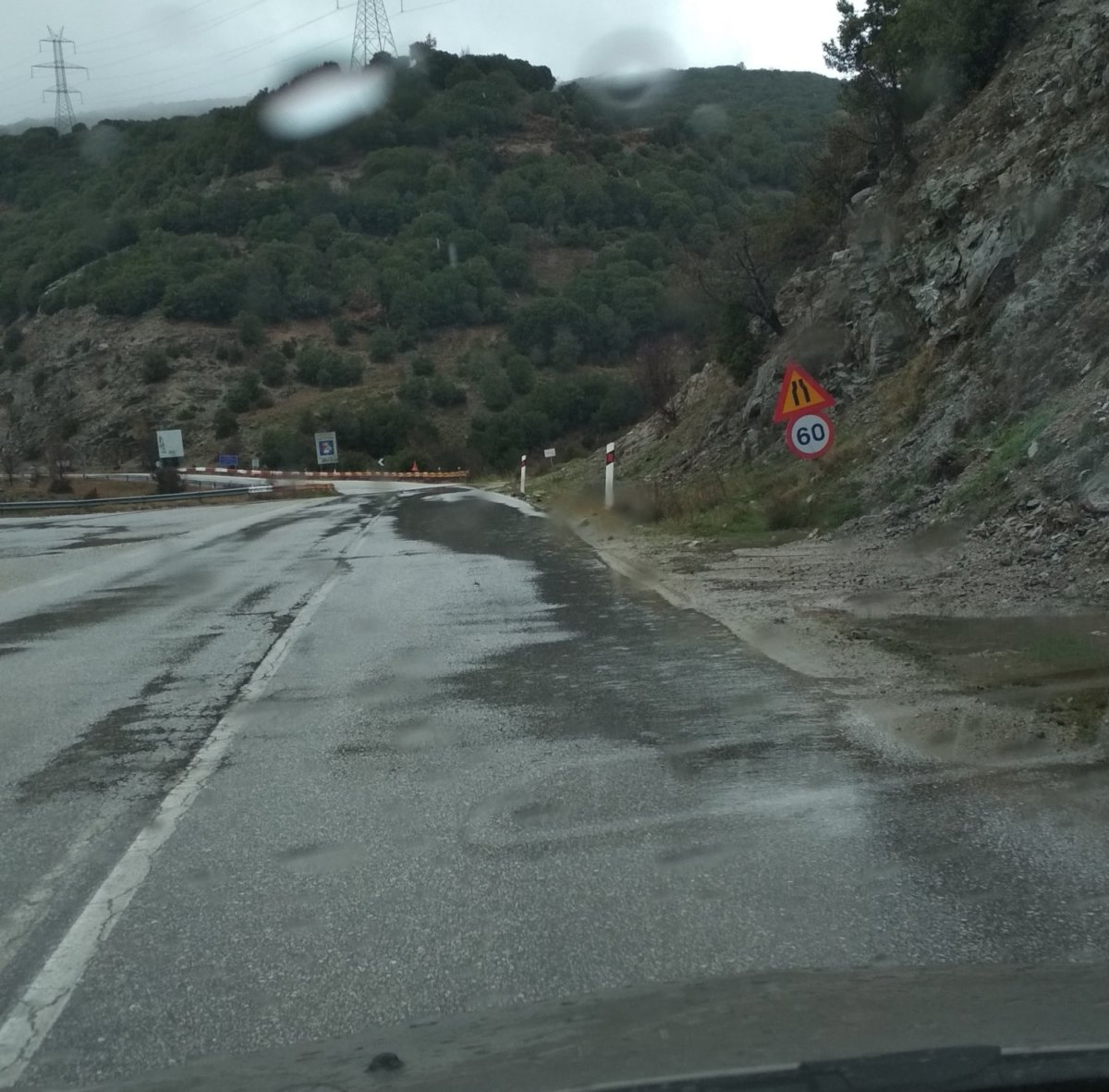 «Εθνική οδός Λάρισας Κοζάνης, μετά την Ελασσόνα. Όχι ότι το καλοκαίρι τα πράγματα είναι καλύτερα, τα ίδια χάλια υπάρχουν, όμως τώρα το χειμώνα για όποιον θέλει να κινηθεί βόρεια της Ελασσόνας προς Κοζάνη, θα πρέπει να έχει τα μάτια του … τετρακόσια!