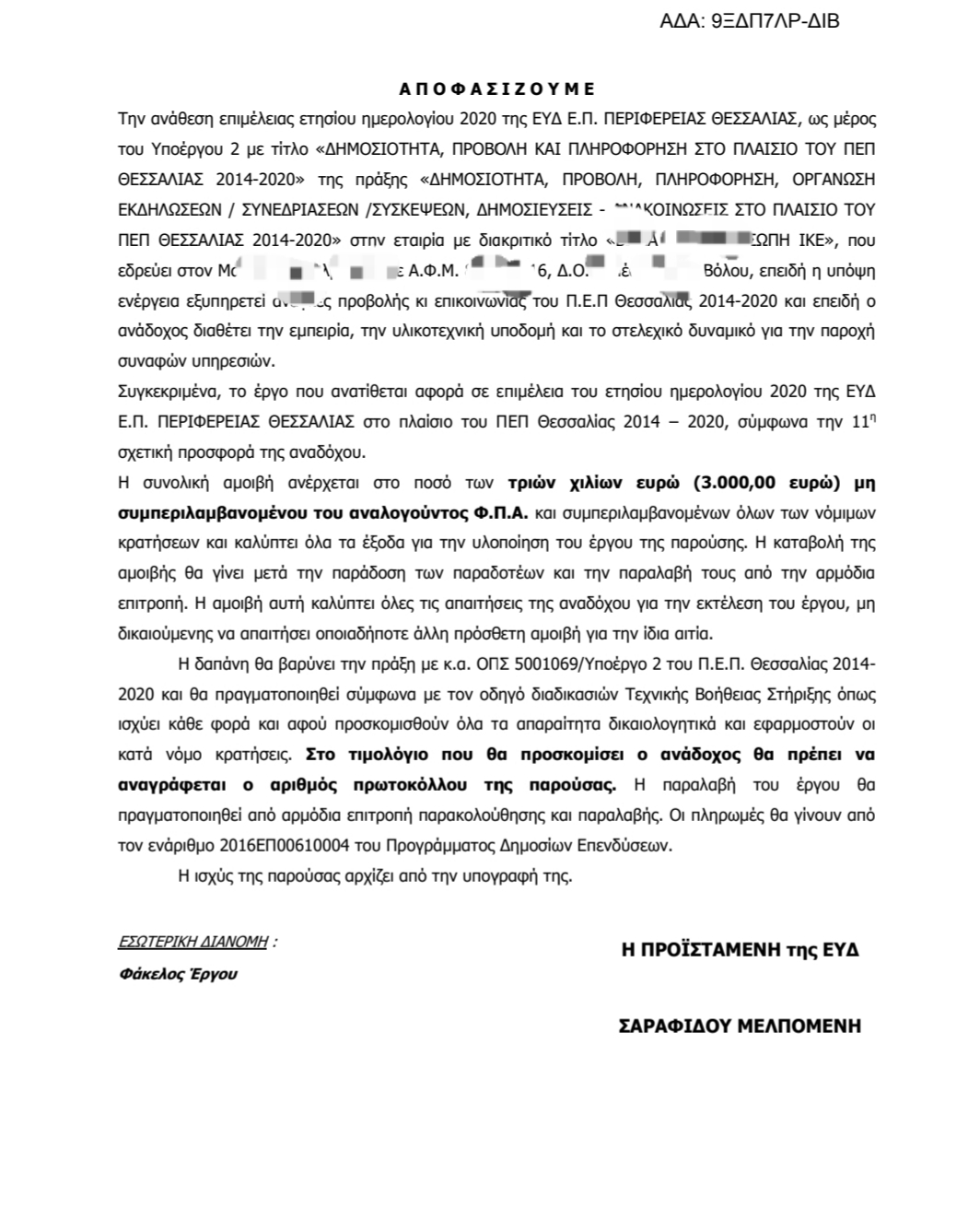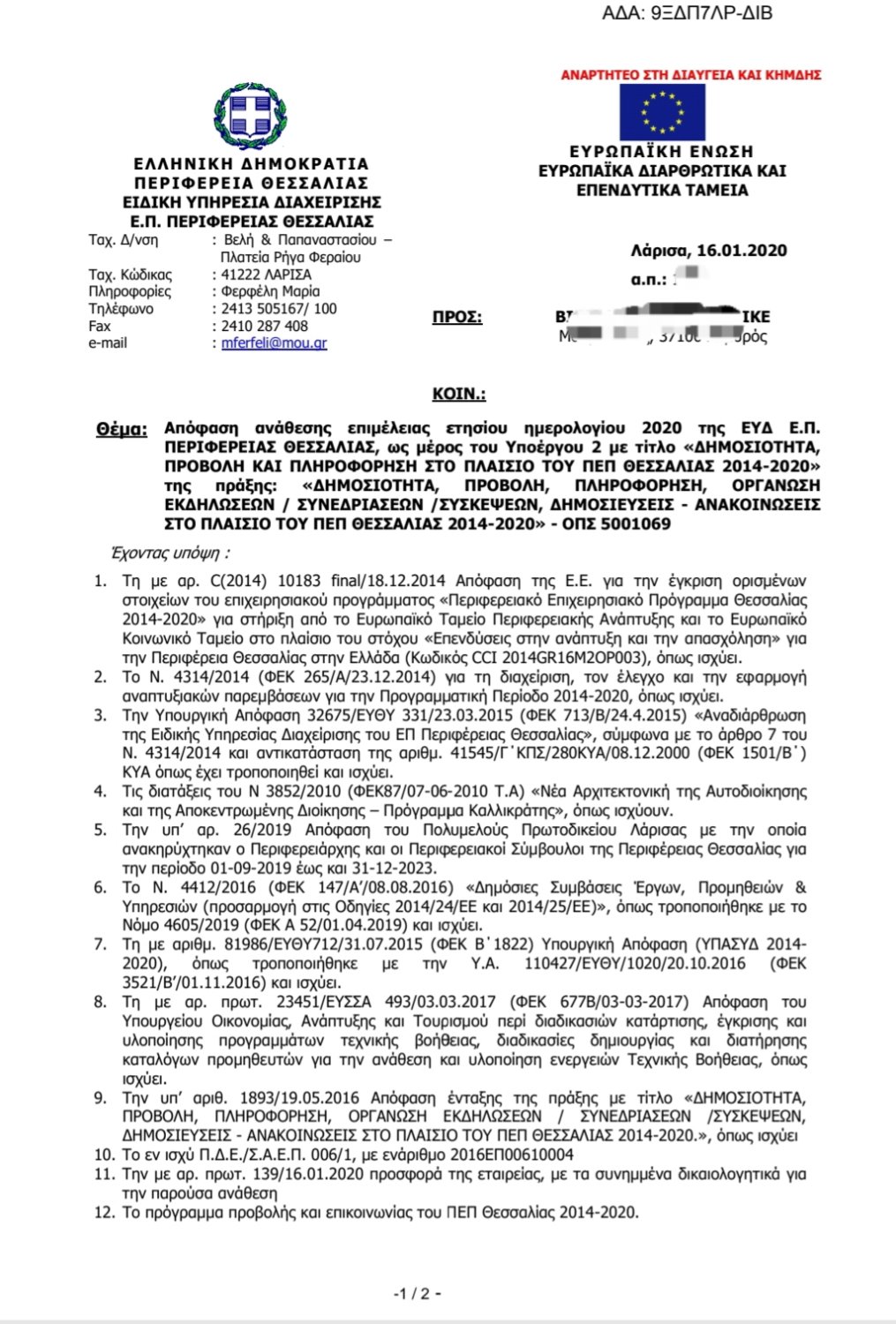 Μετά την ανάθεση των 25 χιλιάδες ευρώ + ΦΠΑ για τα ημερολόγια της Περιφέρειας, στην Ελευθερία της Λάρισας και τα 31 χιλιάδες ευρώ για δύο ημέρες που δαπανά με γαλαντομία για το Αναπτυξιακό Συνέδριο που συνδιοργανώνει πάλι με την Ελευθερία για την προμήθεια γιγαντοοθόνης (όπου θα προβληθεί το έργο της Περιφέρειας), ηχητικής κάλυψης, φωτογραφιών, video κατασκευής σποτ για αυτήν ( που όμως δεν προβλήθηκαν) & δώρα για δημόσιες σχέσεις… ο Περιφερειάρχης Κ.Αγοραστός όπως αποκαλύπτουμε σήμερα, έχει αναθέσει νόμιμα το τελευταίο τρίμηνο στον δημοσιογράφο & Δ/ντη της TRT Σωτήρη Πολύζο εργασίες ύψους 8,5 χιλιάδων ευρώ, με τελευταία αυτή της επιμέλειας του Ημερολογίου της Περιφέρειας που εκτυπώνει η Ελευθερία, ύψους 3χιλιαδων ευρώ.
