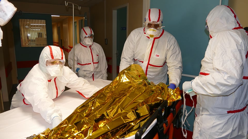 Αμέσως κλήθηκε ασθενοφόρο και οι διασώστες λαμβάνοντας όλες τις προφυλάξεις τον μετέφεραν σε θάλαμο αρνητικής πίεσης στο Πανεπιστημιακό Νοσοκομείο.