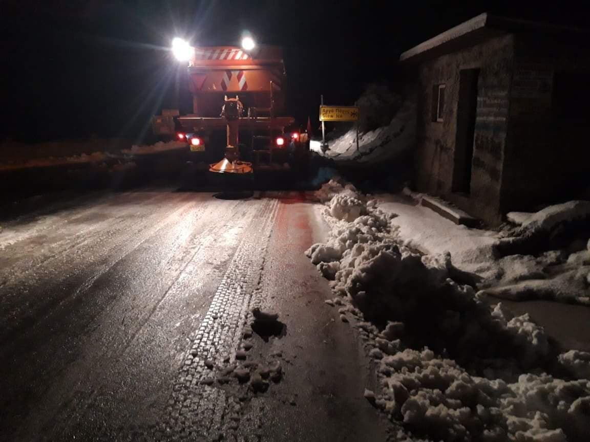 Στις 11.30 το βράδυ έχουν σταλεί μηχανήματα που ήταν σε επιφυλακή στην Ραψάνη, την Σπηλιά και την Καλλιπεύκη για να παραμείνει ανοιχτό το δίκτυο καθώς εκεί υπάρχει πυκνή χιονόπτωση.
