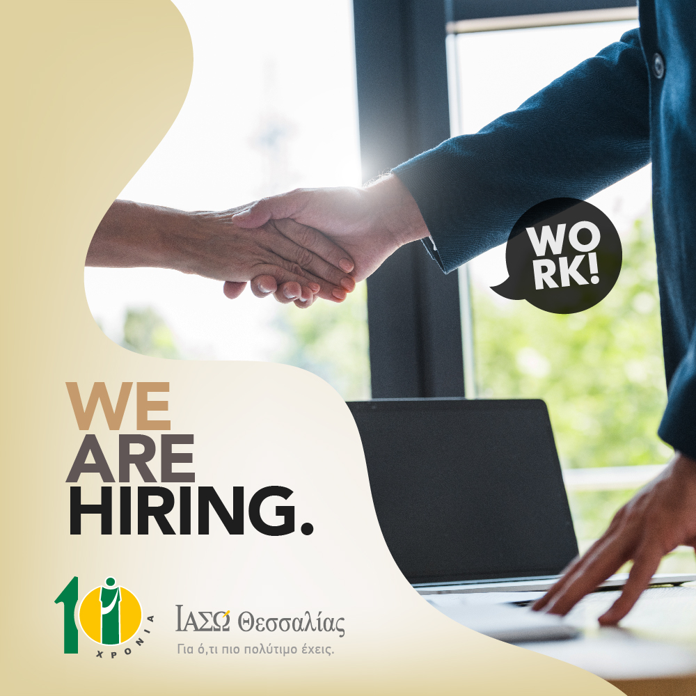 Το ΙΑΣΩ Θεσσαλίας από το 2010 στοχεύει στην προαγωγή της υγείας και τη βελτίωση της ποιότητας ζωής μέσω της παροχής ιατρικών υπηρεσιών υψηλού επιπέδου, πάντα με σεβασμό στην προσωπικότητα, αξιοπρέπεια και ασφάλεια των ασθενών. Στο πλαίσιο της συνεχούς αναβάθμισης των παρεχόμενων υπηρεσιών υψηλής ποιότητας και προκειμένου να καλύψει τις ανάγκες της συνεχούς ανάπτυξής του, επιθυμεί να προσλάβει: