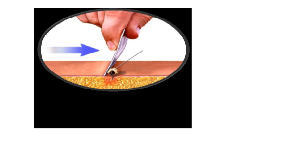 4. Στην περίπτωση δαγκώματος από τσιμπούρι, η αφαίρεση πραγματοποιείται με ένα ζεύγος από λεπτές λαβίδες. Αυτό πρέπει να γίνει από κάποιον με εμπειρία, γιατί υπάρχει κίνδυνος να κοπεί το τσιμπούρι αφήνοντας στο εσωτερικό το μισό.